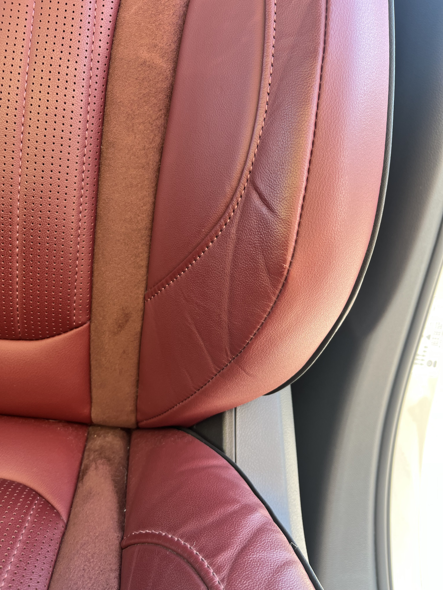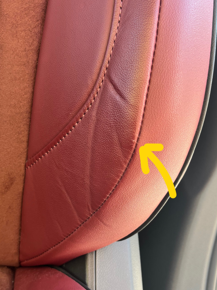 Заломы на кресле то вообще с самой покупки были, они всегда так выглядели. Тут грустно что в одном месте краска начала слезать. Вроде и обработку кожи в детейлинге делал, но вот так(