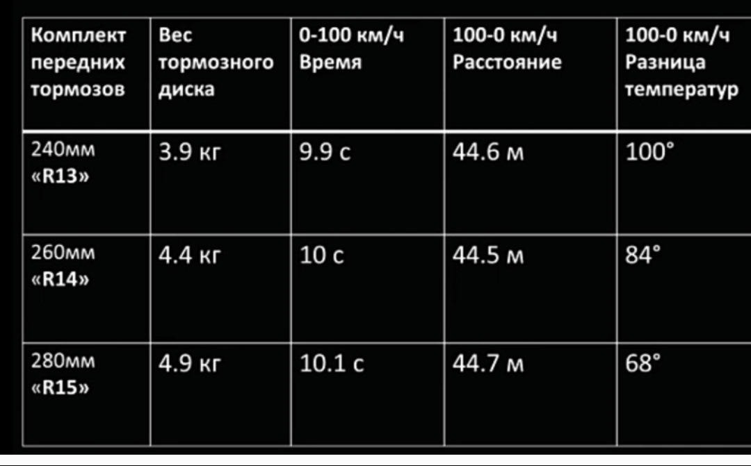 Да разницы при первых экстренных торможениях не будет. К примеру замерялись уже 100-0 на 13-х, 14 и 15-х тормозных дисках со штатным суппортом и колодкой. Разницы вообще не было.