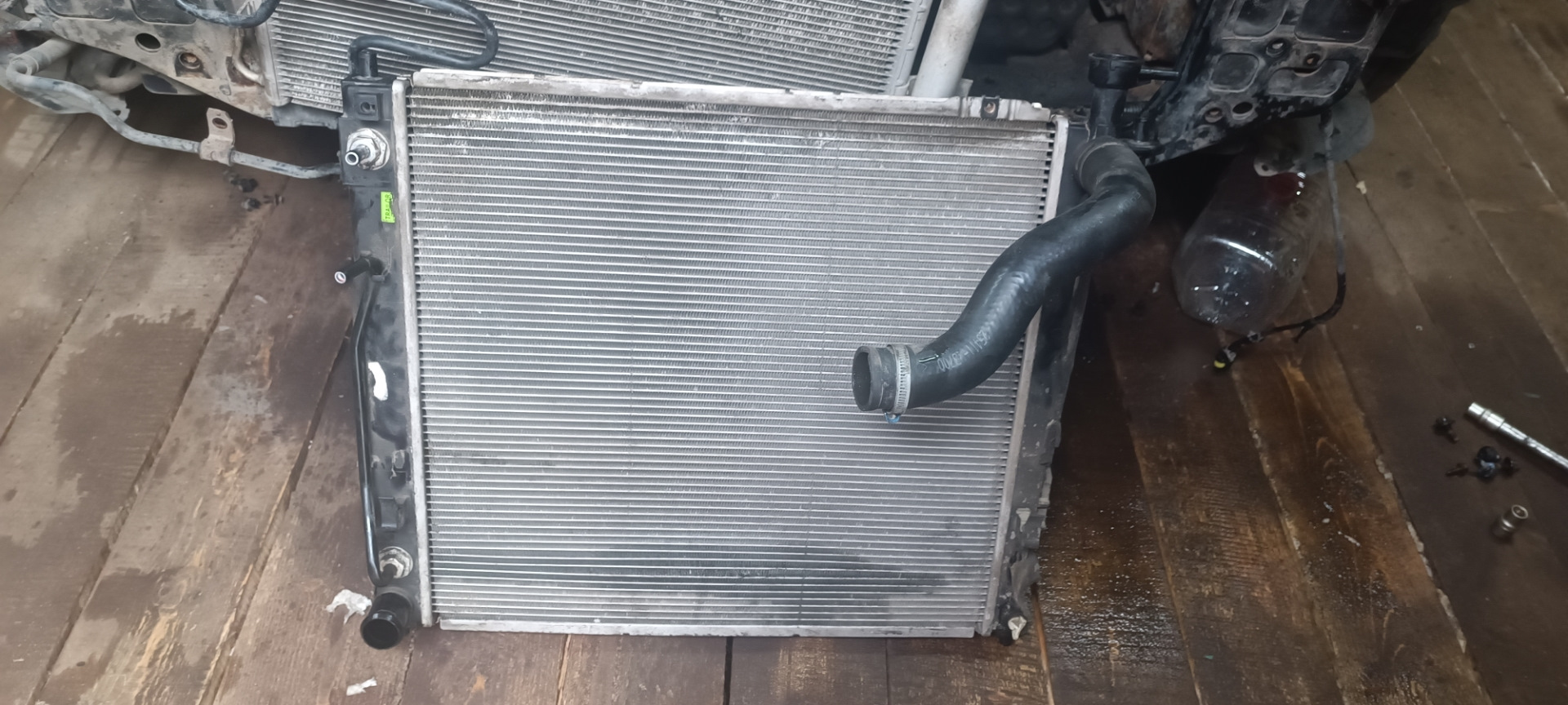 Катался, катался на машине и ничего не предвещало беды и в один прекрасный день поехал из деревни домой и по пути через печку почувствовал запах антифриза, остановился посмотреть и увидел сырой двигатель спереди, но никаких струек и подтеков не увидел. Поехал дальше, благо оставалось до дома не давлоке и по приезду запах ещё усилился и я около дома открыл капот и увидел 3 маленькие струйки. Сразу же заказал новый радиатор, не стал заморачиваться со старым и паять его, так как где-нибудь в другом месте снова потечёт и так родной отслужил 280 тысяч км. Заказал фирмы STRONG, не стал брать самый дешёвый, встал как родной.