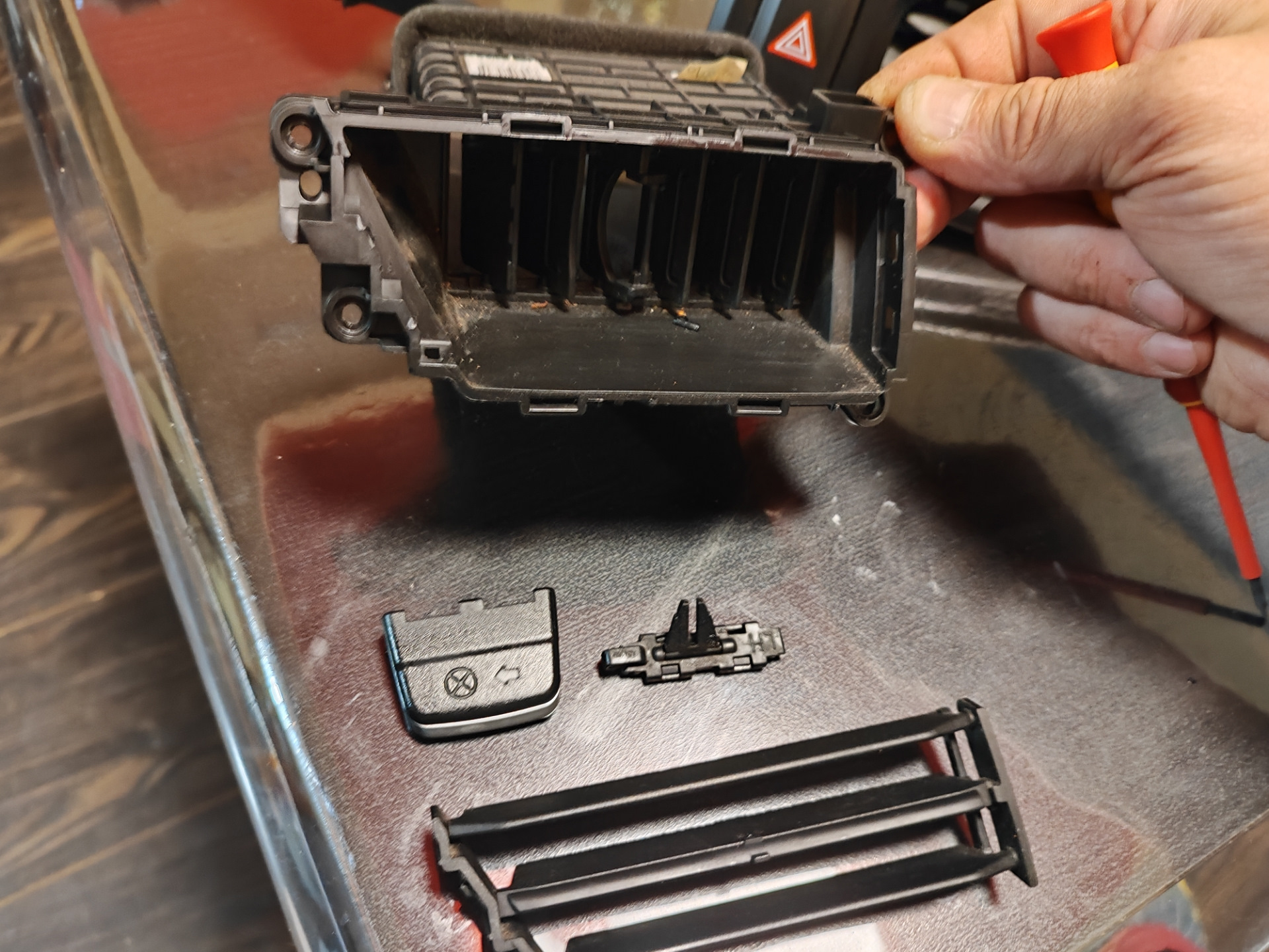 А купив эту ручку всё равно придётся разбирать дефлектор, чтоб установить её. Правильно. Тогда зачем покупать новую если все равно туда лезть. Не проще свою заклеять?