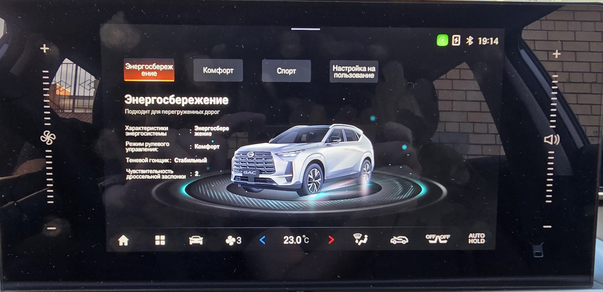 Есть довольно интересный режим индивидуальных настроек. Можно выбрать не только отклик двигателя или усилие на руле, но и по пятибалльной шкале– чувствительность педали акселератора. Если разобраться с многочисленными вкладками меню, можно подобрать более-менее оптимальный вариант комплексных настроек – порезче, помягче, на любой вкус. Глубоко в настройки пока не лез, пока езжу на комфорте и иногда в спорте, когда-нибудь доберусь и до кастома.