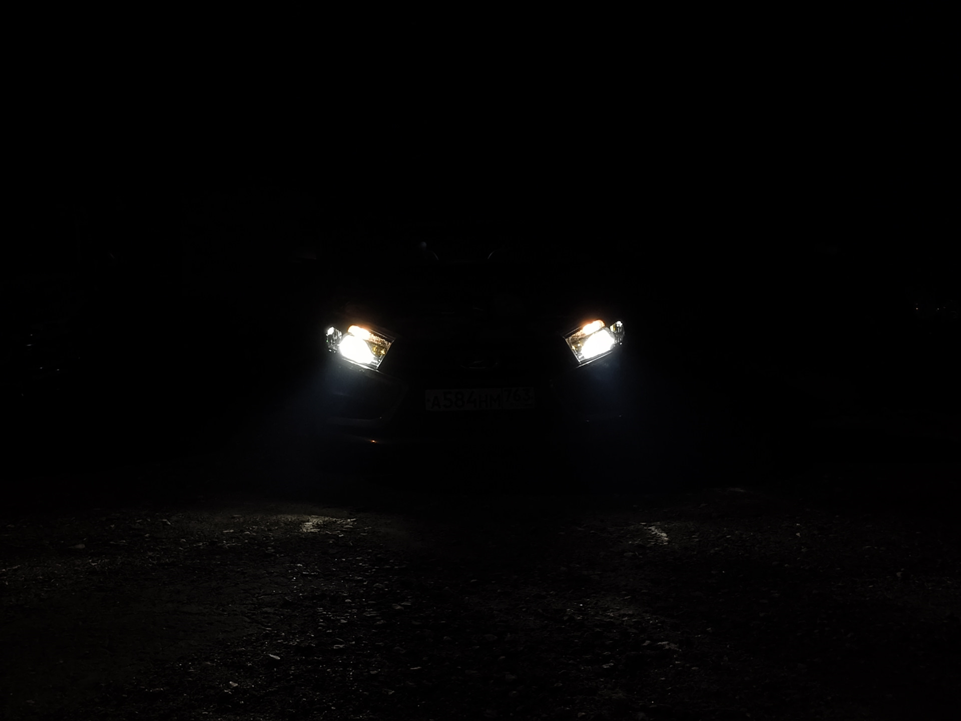 После установки пришлось чуть приподнять правую фару, других регулировок не проводил. Лампы ставятся легко и непринужденно, крутятся в цоколе с небольшим натягом, но легче чем D7 или P7. Поехал сразу прокатиться по ночному городу и трассе. Видео покатушек ниже: