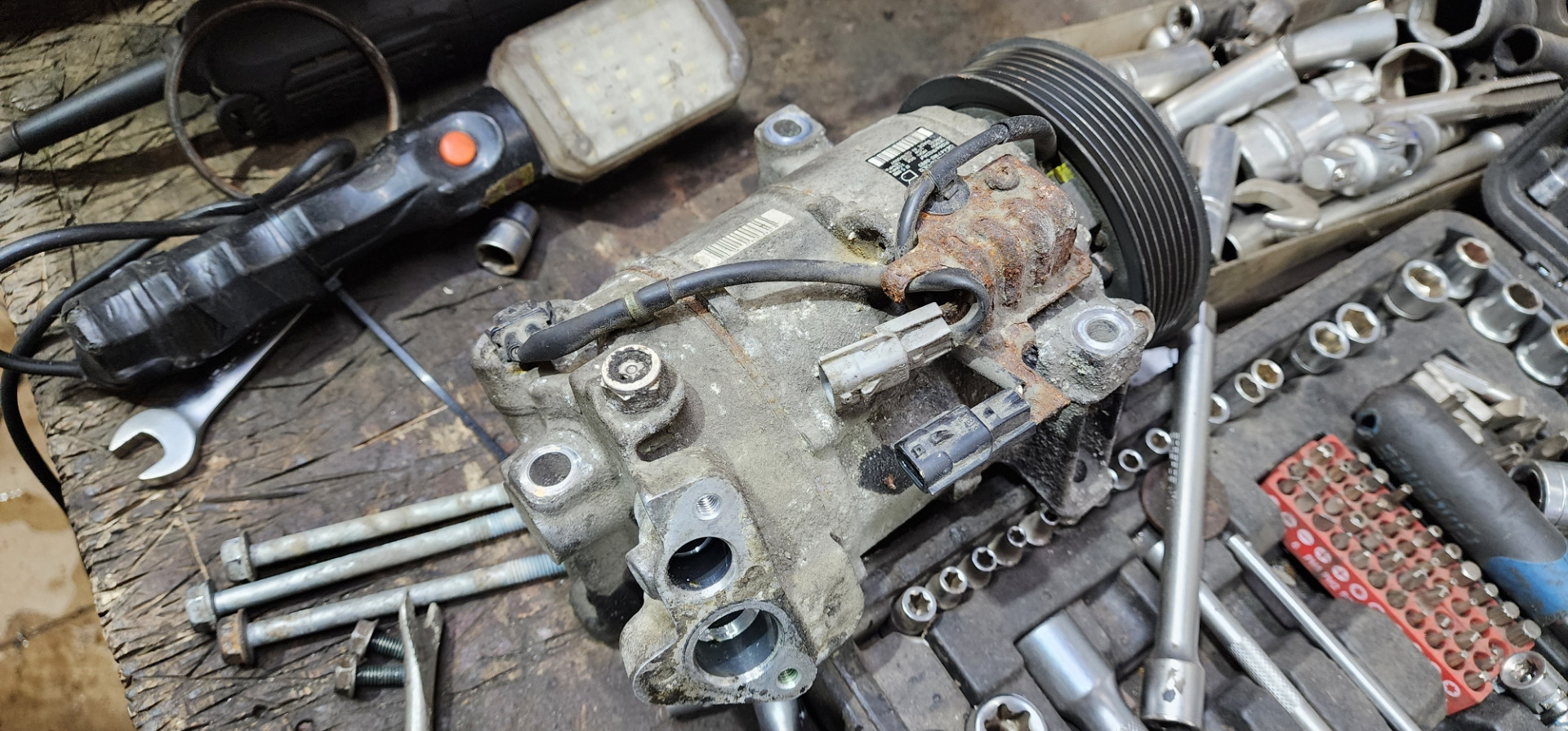 Оставляю деталь для очистки и заправки маслом уезжаю…Павел говорит что компрессор реально как новый, редко в таком состоянии б/у он видел, но перед установкой его необходимо промыть и заправить маслом.