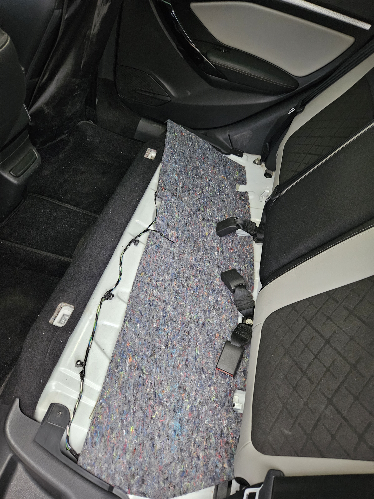 До заднего дивана всё было укрыто виброизоляцией и вспененным каучуком, а уже оставшаяся часть пола была укрыта виброизоляцией и «МАГМОЙ».