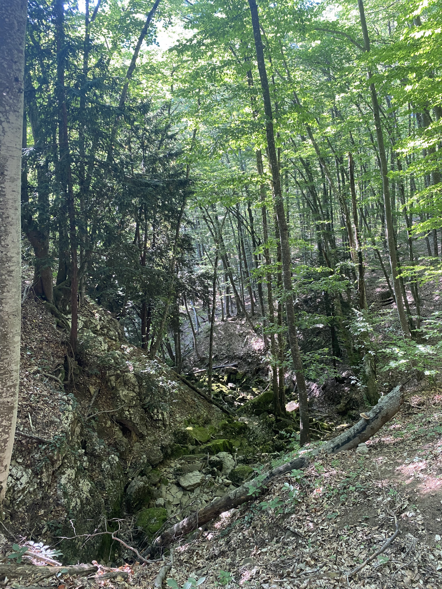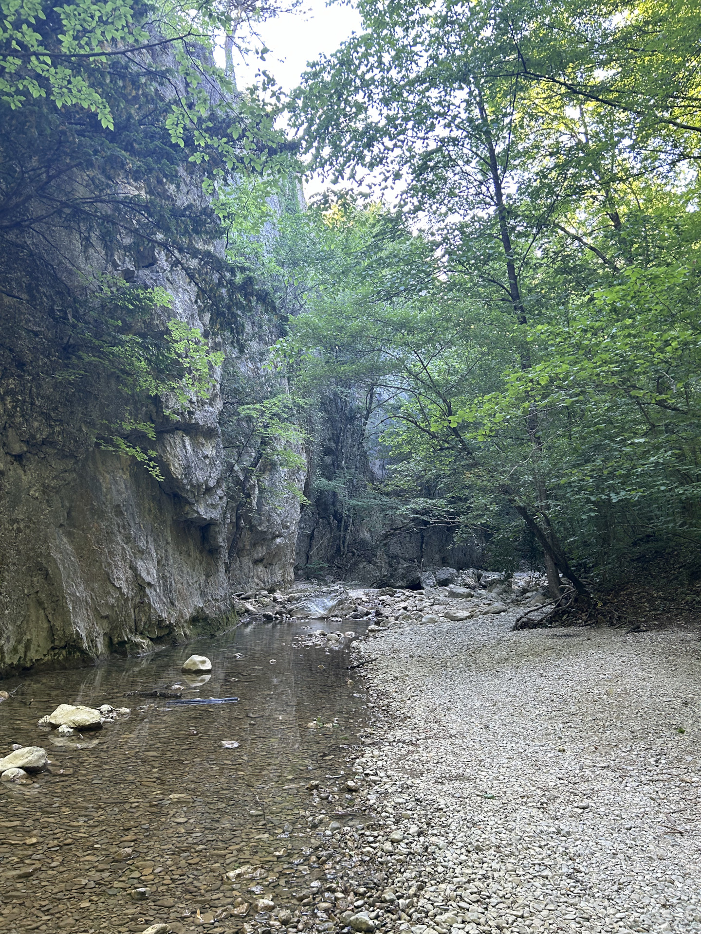 Поездка состоялась вообще спонтанно, утром проснувшись поняли что по всему побережью сильный порывистый ветер и идти на пляжку с таким ветром как-то не хотелось, вот и подумали сгонять туда где еще не были! Дорога до «каньона» пролегает через гору «Ай Петри», то бишь подымаешь в гору по серпантину и потом еще километров 10-12 едешь уже через старое Бахчисарайское шоссе, дорога там конечно Я Вам скажу жуть, на обочинах лежат глыбы камней, упавшие с вершин, серпантин вообще не реальный, так же вылетают местные гонщики, плюсом только то что много зелени и деревьев по этому ты как бы в “тенечке” .