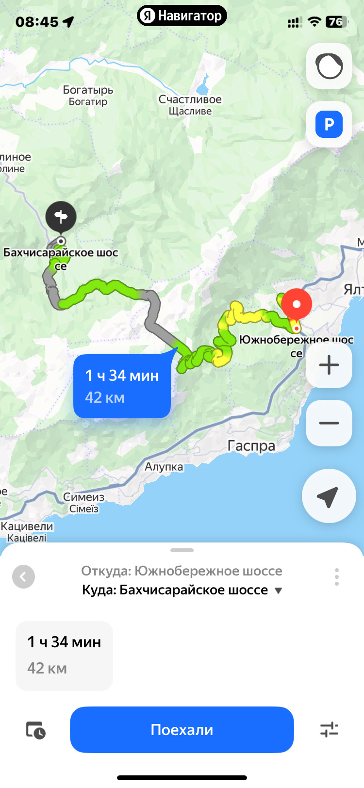 Дорога на Ай-Петри мне очень понравилась. Серпантины, узкая. Люблю такие. По ним ездить не скучно. А жена вот боялась)
