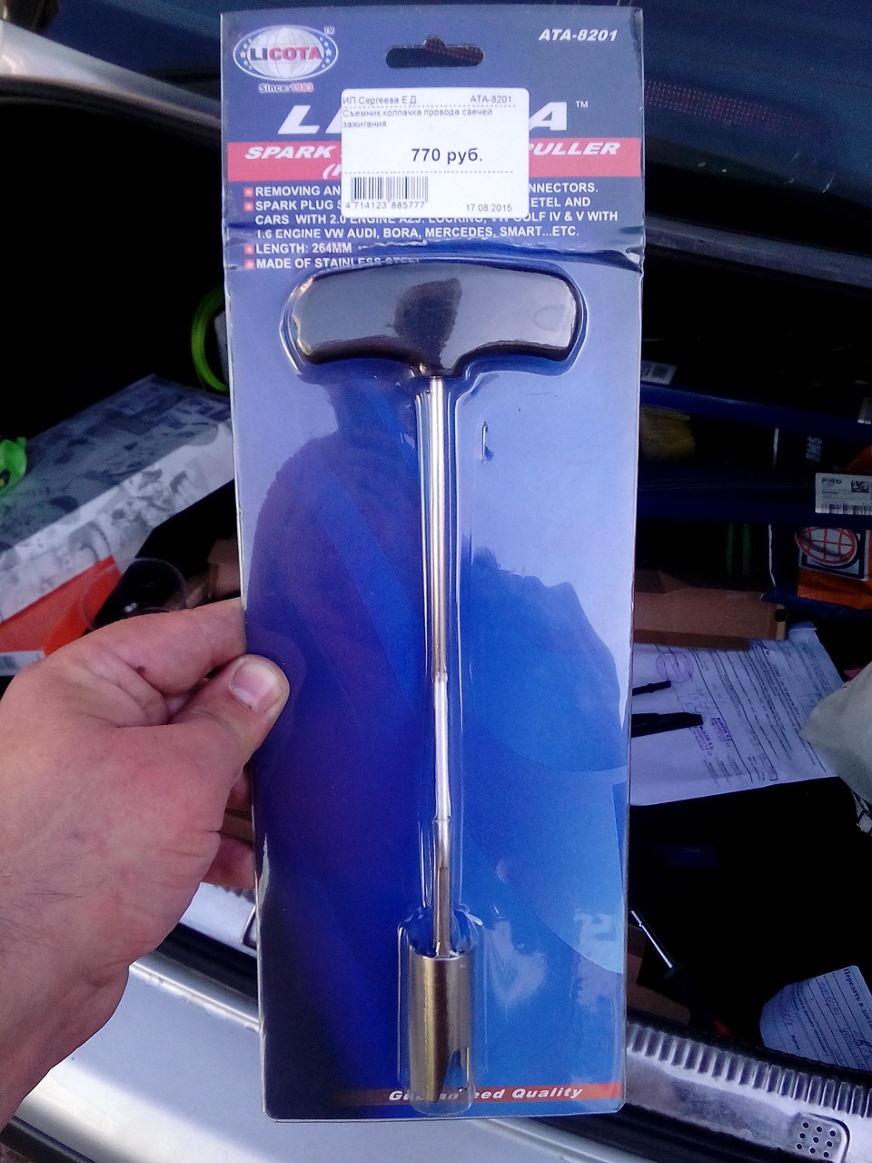 Для замены был куплен ключ магнитный длинный с шарниром, и из раскладухи сделал съёмник свечных колпачков!
