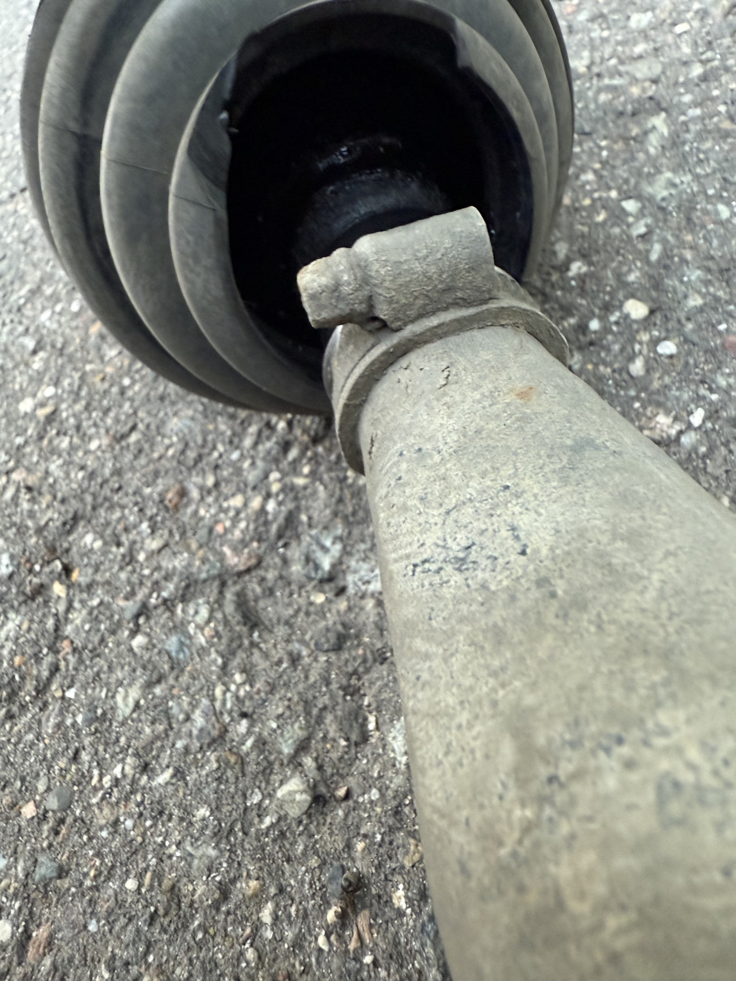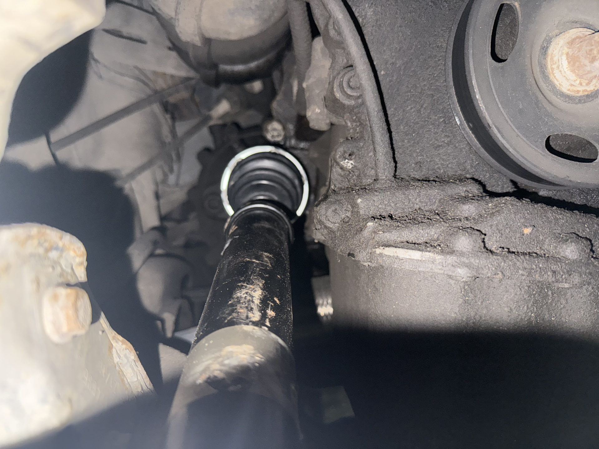 Когда я делал выхлопную трубу, я заметил что пыльник шруса на правом приводе приказал долго жить.