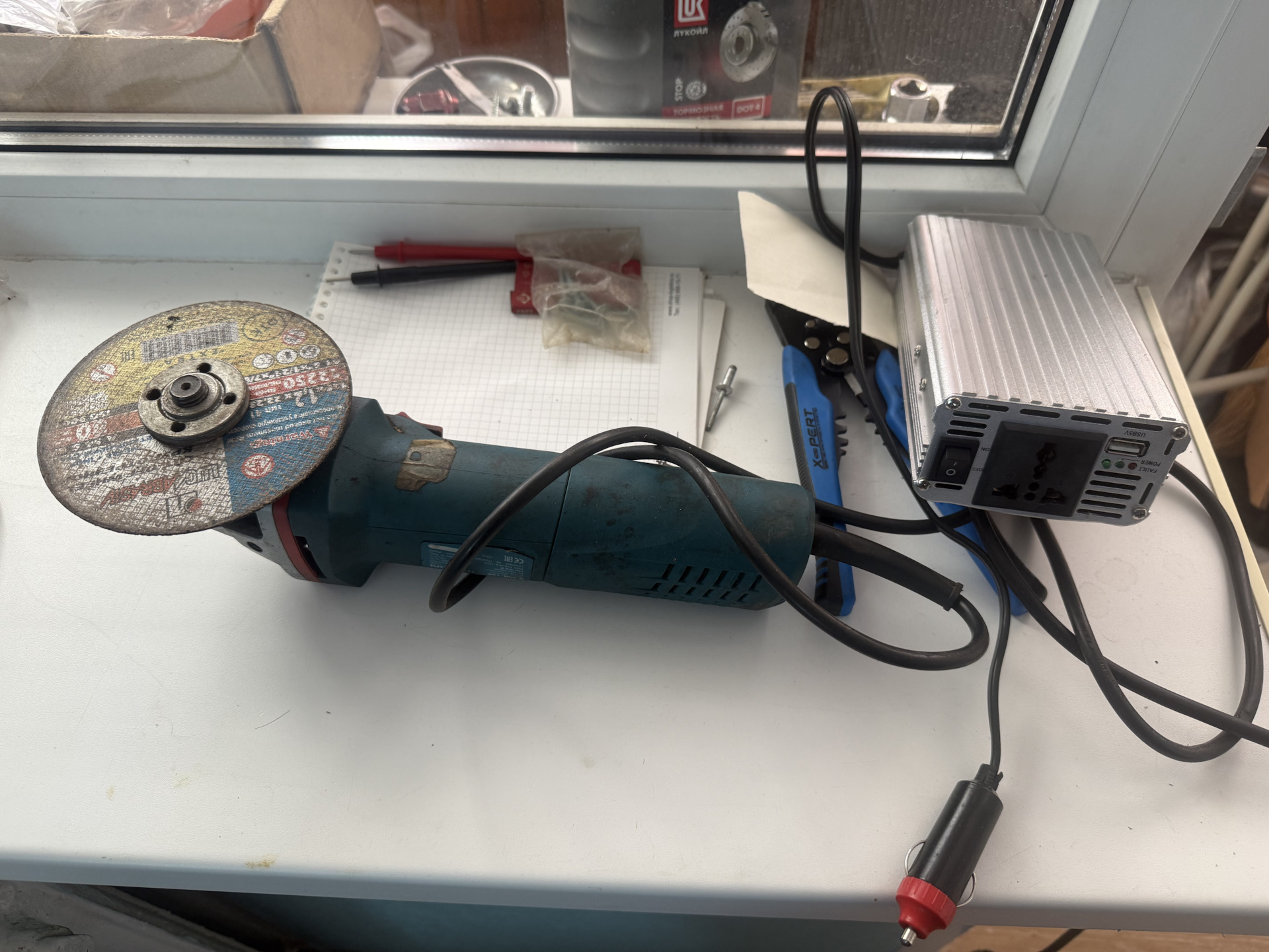 На следующий день, я взял преобразователь 12V-220V, болгарку и пошел отпиливать гайку, уже в 3 день.