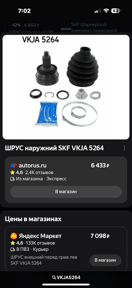 Вот комплект ШРУСа с этого привода, посмотрите разницу в цене. 3000 точно не стоят той гребли, чтобы менять с успехом 50\50% ШРУС и пыльник. Это имело смысл, когда Вам в СТО за 1000₽ это делали прессом, но за 3000₽ самому заниматься, не стоит оно того, тем более что одна ошибка и покупай новый пыльник, хомут, то есть экономически нет смысла.