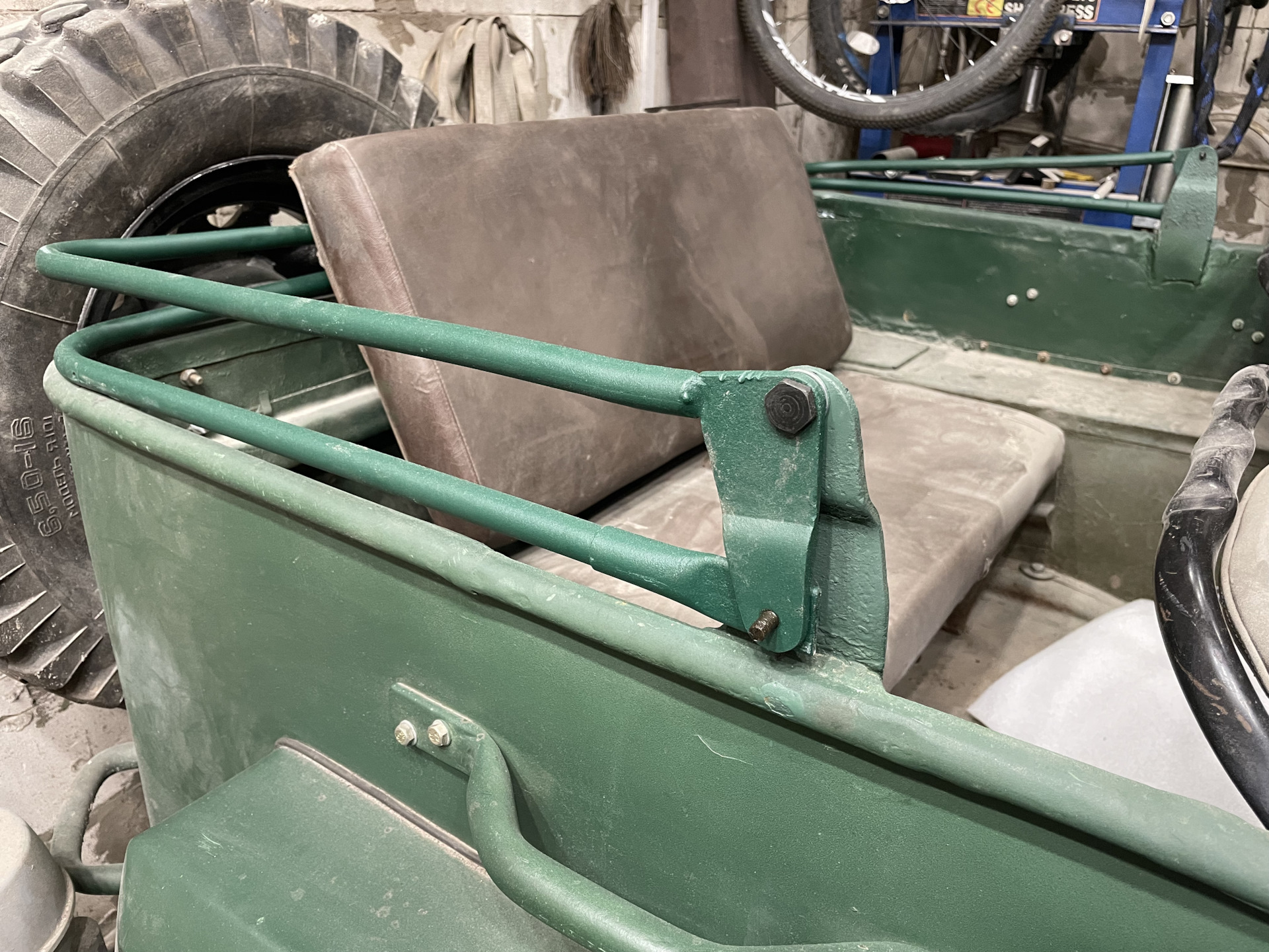 Установочные ремни, ремни крепления свернутого тента и пологи (их не ставил) устанавливаются на специальные скобы 910496-Б. Чертежа такого нет, но есть новодельные сделанные по образцу (кто не догадался чьи – пишите в личку. Дам контакты).