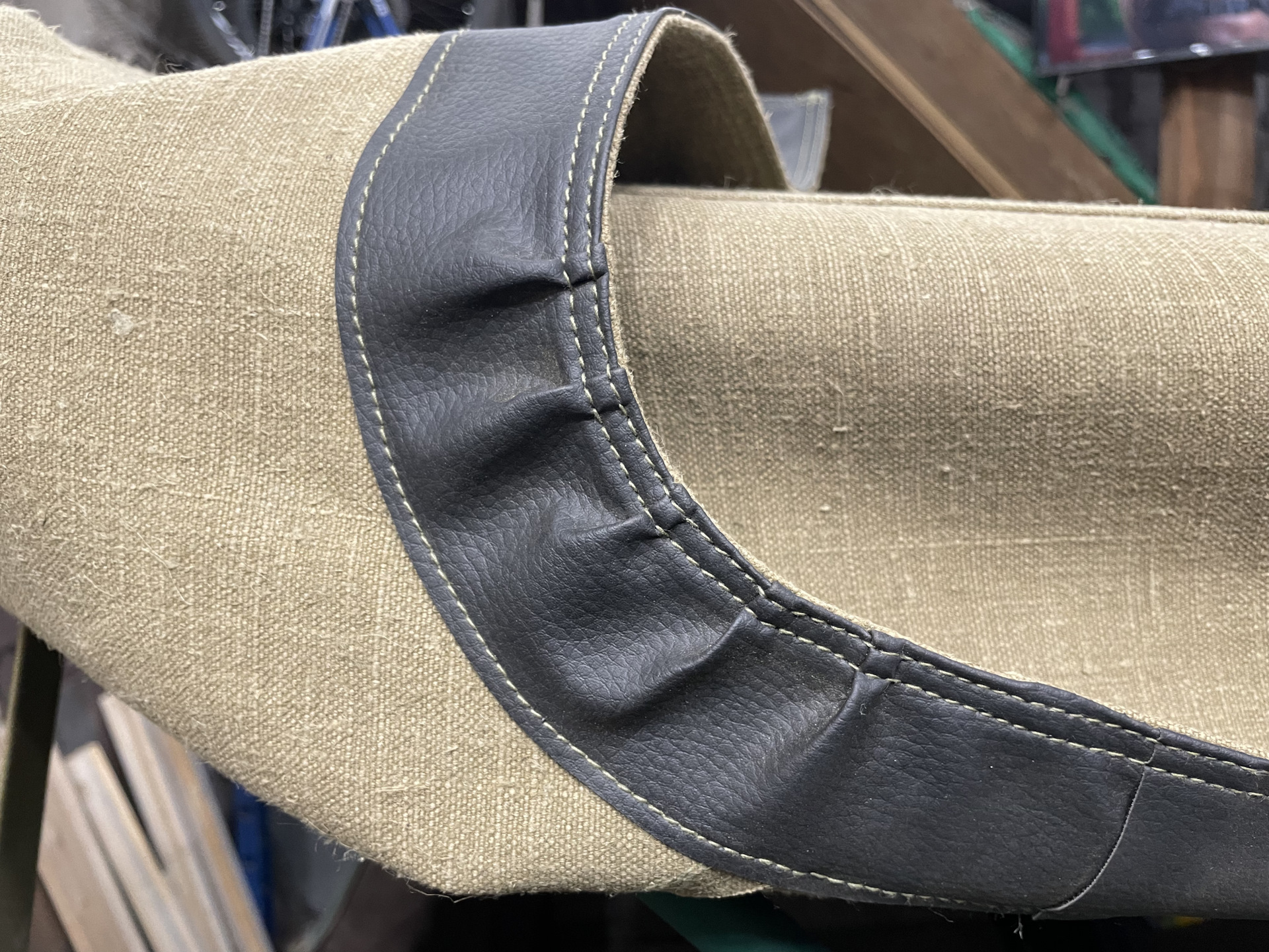 Кожзам аккуратно сложен мелкими одинаковыми складками. На одинаковом расстоянии. С аккуратными стяжками сквозь каждую складку. Люблю когда люди в своей работе уделяют столько внимания пустяковым мелочам.