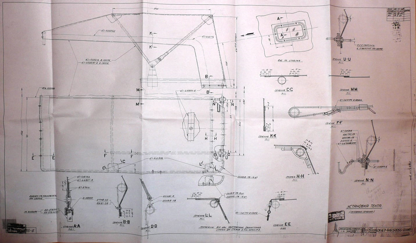 Тут я и открыл в чем отличие раннего и позднего тента. До этого не вчитывался в размеры на чертежах. Чертеж раннего, а кузов поздний.