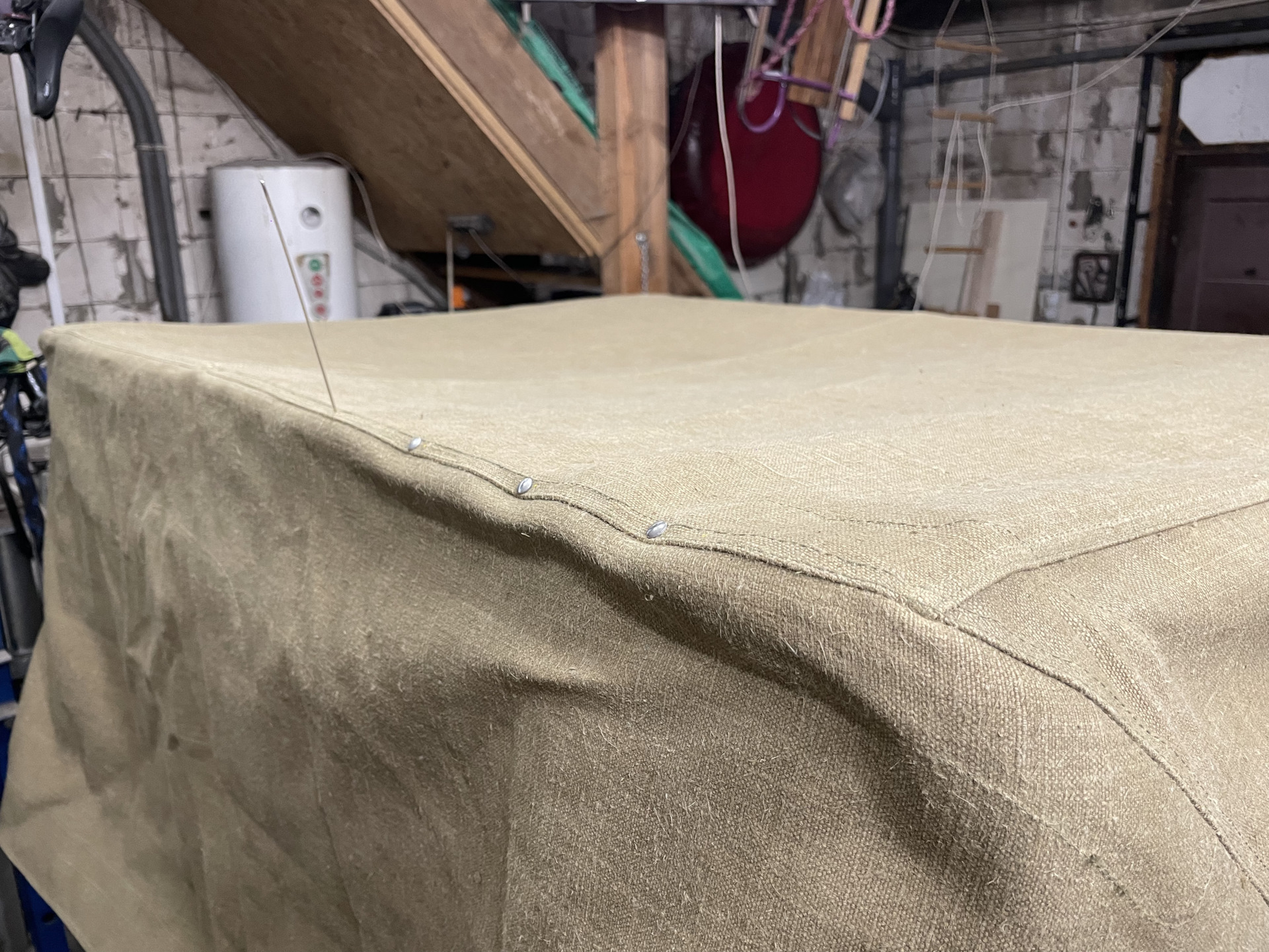 Накинул тент и обнаружил еще одно место примерного отношения к изготовлению тента.