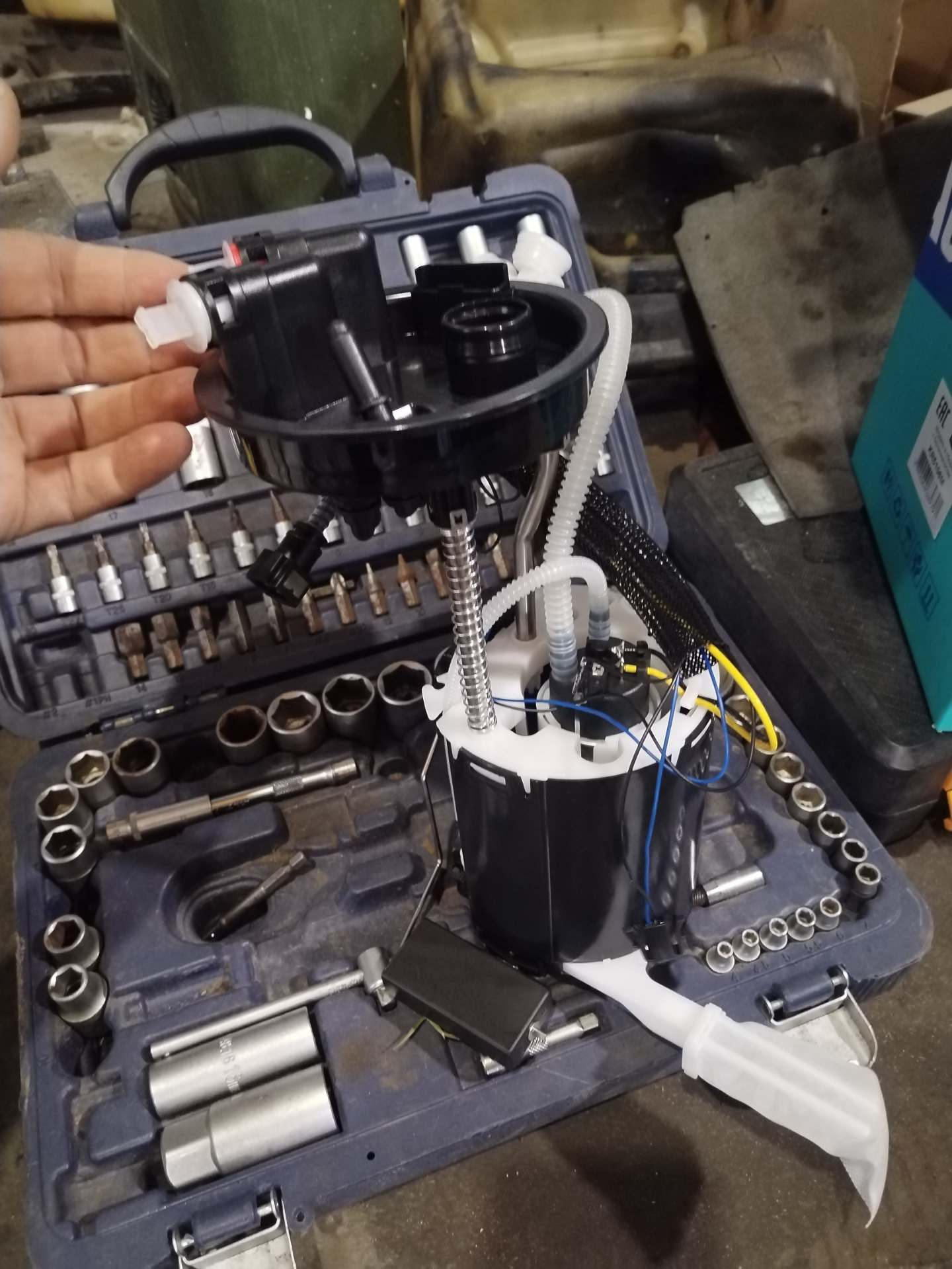Ну вот и заменил бензонасос всё полностью в сборе. Сегодня проехал 110 км в общей сложности: на работу и обратно. Попробовал и спокойно, и резко разгоняться, и просто на круизе. Всё отлично — никаких проблем — надеюсь проблема решена.