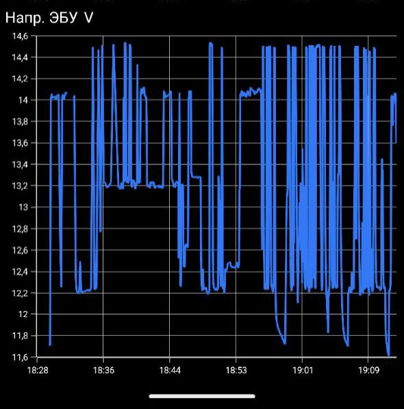 Я сначала тоже испугался, думал хана гене. Поскольку в мозгах была ошибка (одна из ошибок) по гене. Улучшил соединение на минусовой клемме. И потом увидел напряжение 14+. А потом снова увидел 12.7. Задумался. И мои задумки подтвердились. Умная зарядка. А ошибки висят из-за криво установленного вебасты с турботаймером. Первый владелец постаралсч