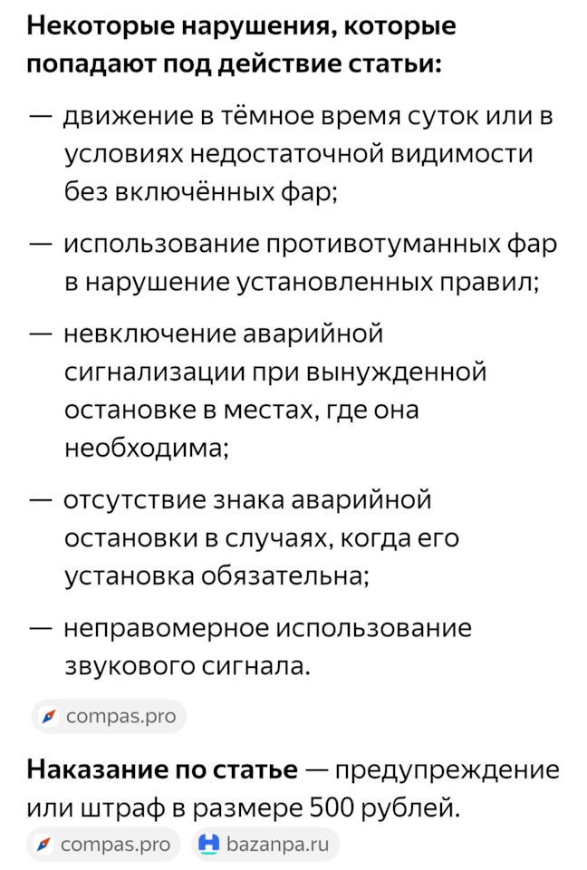" За езду без ближнего света днём инспектор может выписать штраф по статье 12.20 КоАП РФ "