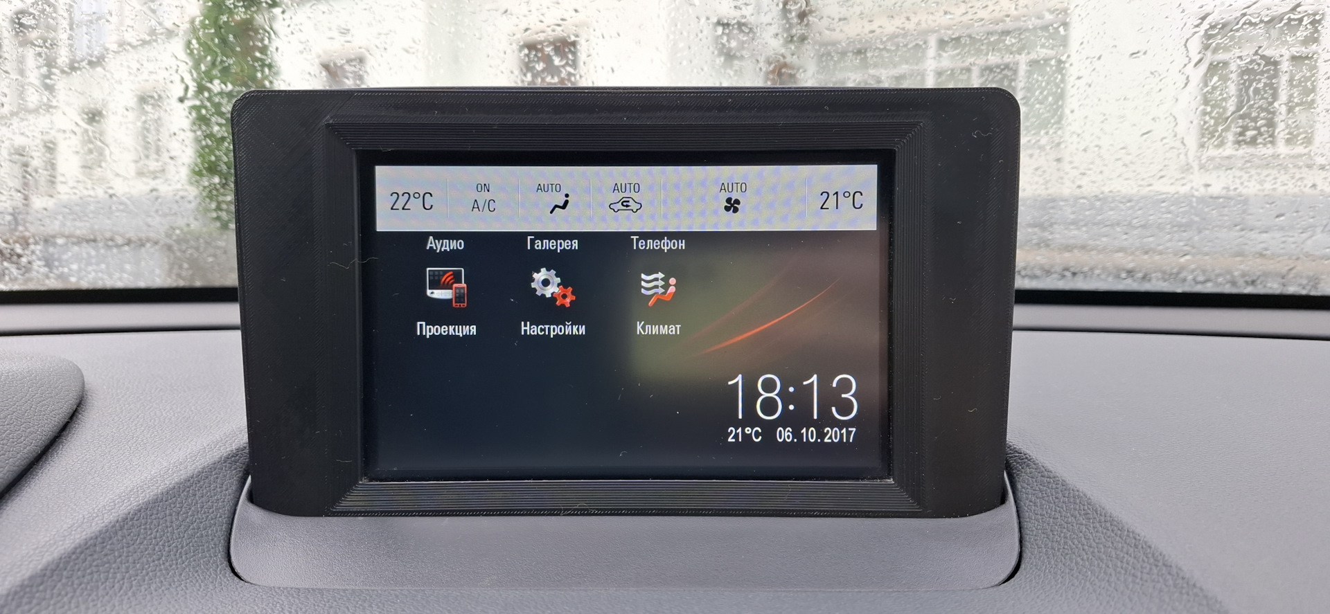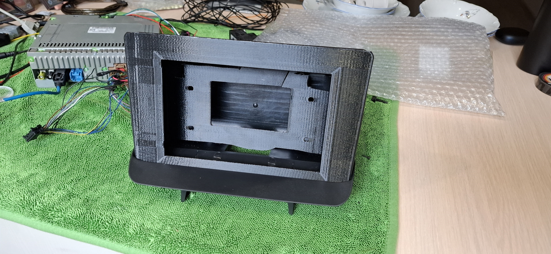 В итоге за основу был взят корпус от китайской магнитолы с ozon, а вот переходную рамку пришлось изготовить с нуля, тут мне помог мой друган, на d2 его нет.