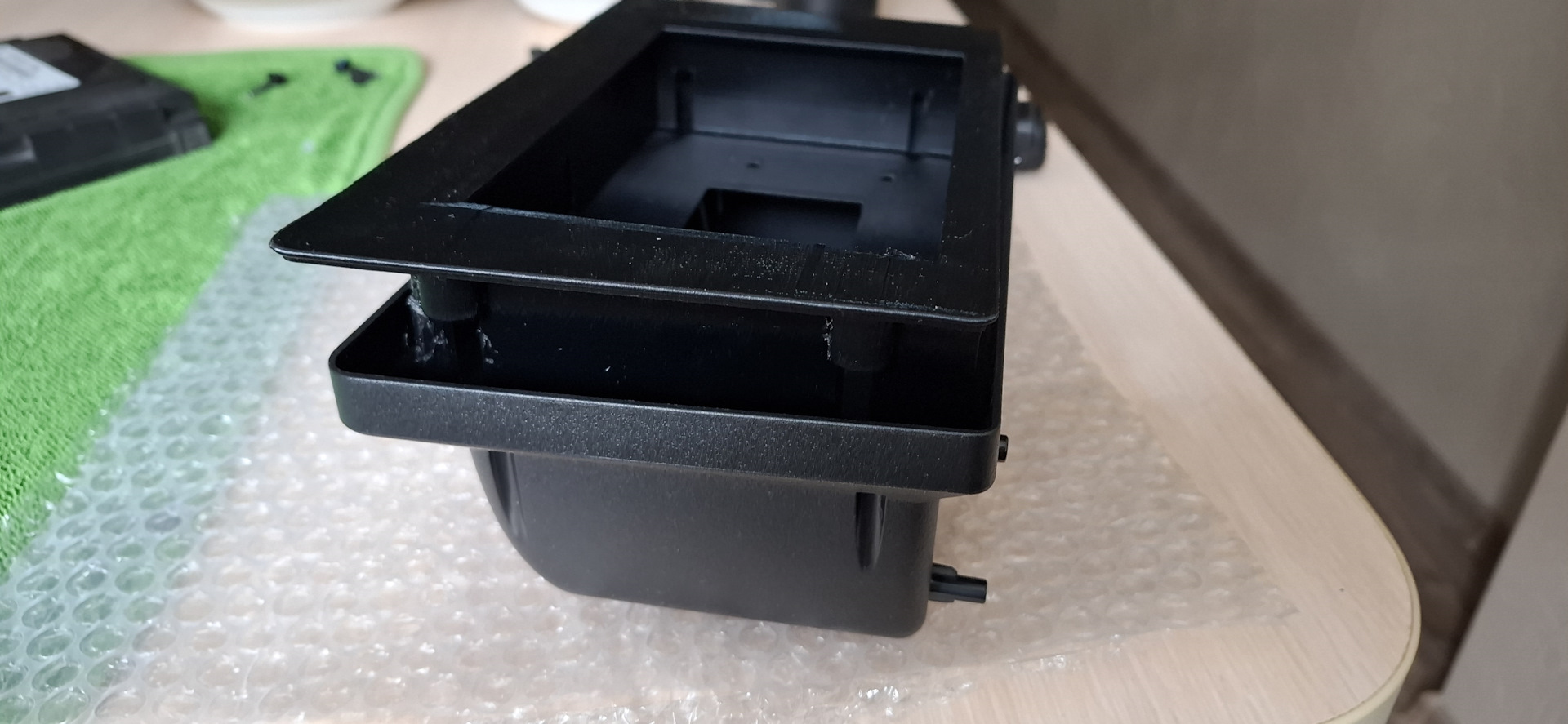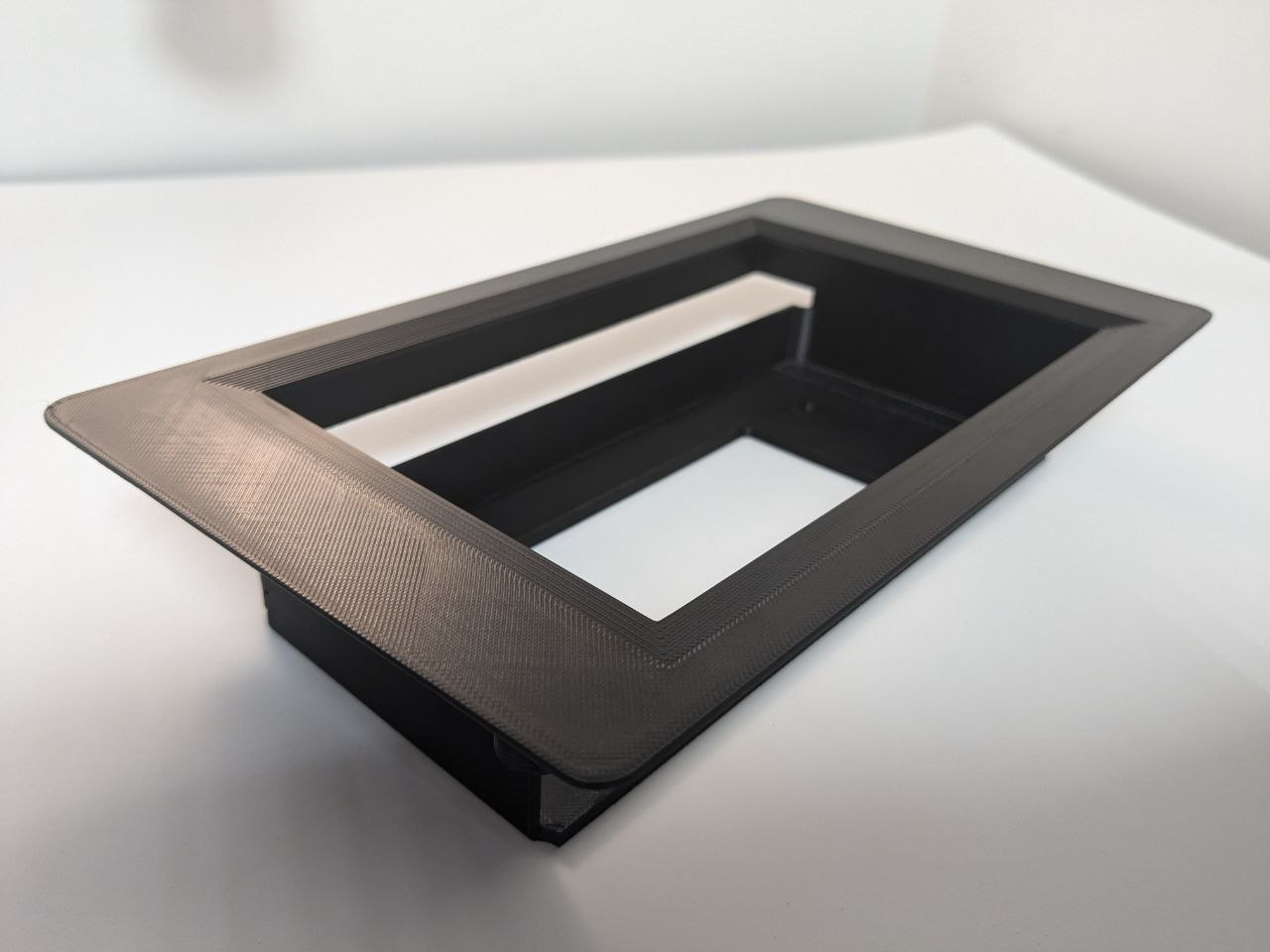 Я делал необходимые замеры, он чертил удаленно, потом я печатал из PETG пластика, делал примерки а друган вносили правки. В итоге рамка была готова и напечатана из ABS пластика.