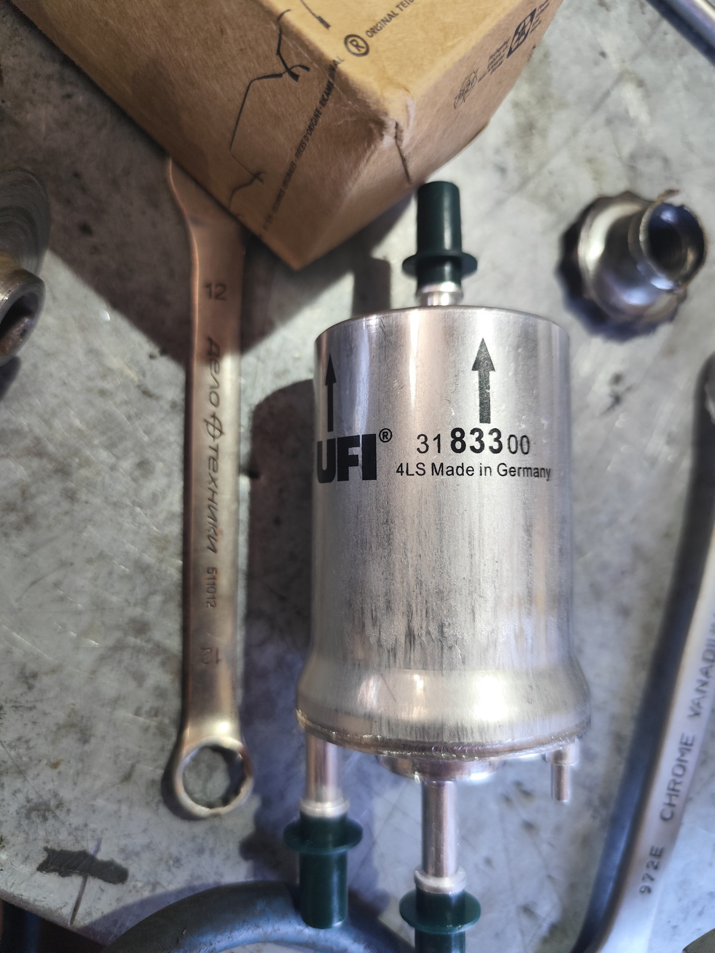 Не хочу тебя расстраивать чувак, но топливный у тебя паль. Оригинальные топливные фильтры Юфи производятся в Китае, не Германи и упаковка вообще на оригинал не похожа. Брал бы лучше именно Юфи, они с завода идут в Рапид и у нас официально продаются, получишь тоже самое качество оригинала. А так называемы оригинальные запчати ВАГ 2/3 это поддека сейчас