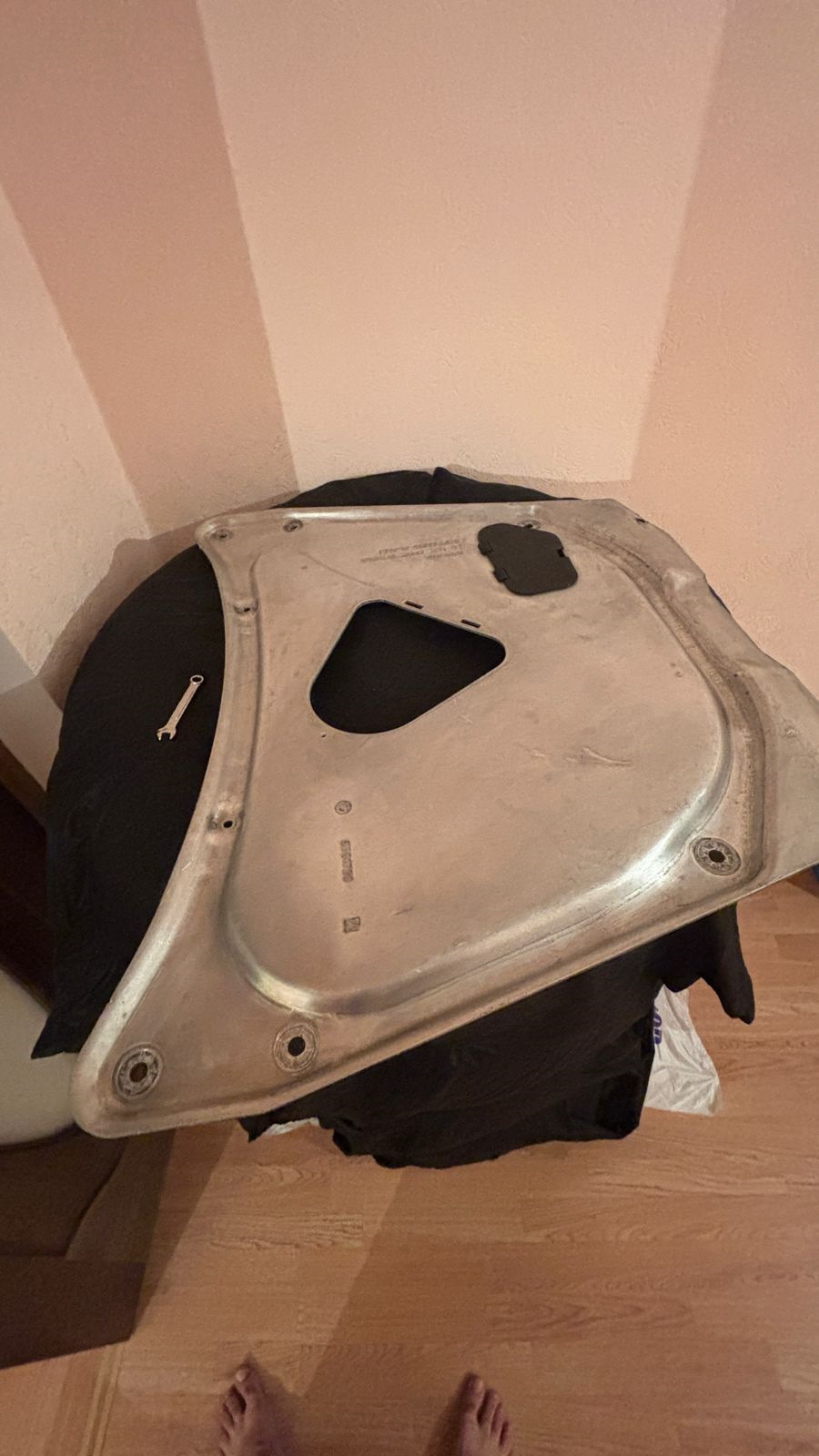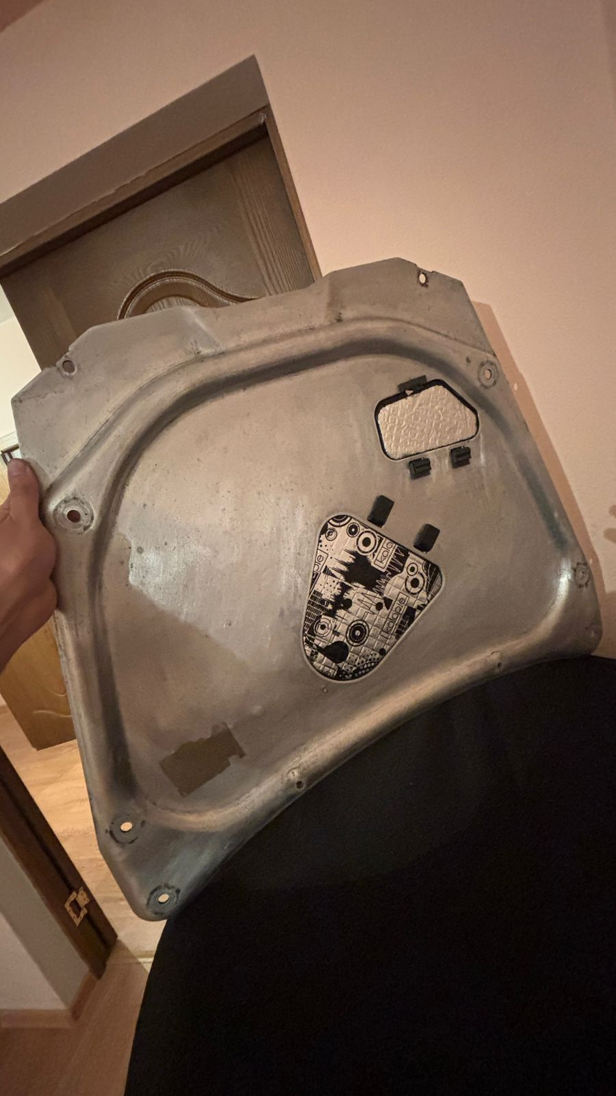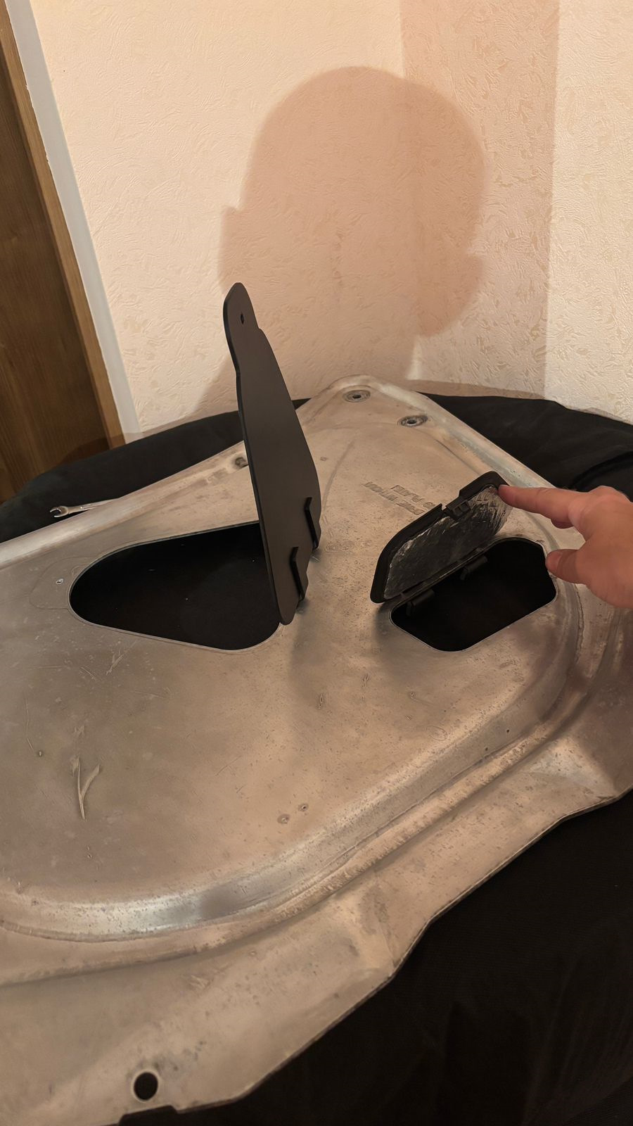 Шаг за шагом продолжаю исправлять косяки по этой машине после бывших владельцев. Сейчас очередь дошла до защиты двигателя. То что защита стоит не правильная выяснилось случайно при замене масла. Стало это понятно когда я увидел, что отверстия не совпадают ни с масляным фильтром ни со сливной пробкой. Эта защита имела мелкие отверстия в разных сторонах. Ставится такая защита на 3.0 версии. На моем же 4,4 идет защита с одним большим отверстием в центре и одним маленьким с краю. Поэтому что бы заменить масло приходилось скручивать защиту. Такой вариант мне не нужен естественно. Поэтому с разбора взял правильную защиту под мой мотор. Укомплектовал ее крышками. Малькая была на руках. Но вот большую не вариант было найти ни где. Ни авито, ни разборки такие вещи не продавали. Пришлось придумать ее и изготовить самому. Продумать так же все креплкения. Снял размеры с отверстия и с припуском вырезал из пластика новую крышку. Изготовил две Z-образные изогнутых ножки которые вдвеваются в прорези в самой защите. Короче говоря сделал так же как и было у оригинальной крышки. С дугого края я решил фиксировать на винт самонарезной. Для того что бы любой мастер к примеру не обломал там ни какие защелки которыя я бы мог изготовить. Ну или что бы просто ни потерять ее в дороге если поток воздуха станет на нее слишком сильно давить. Поэтому крепление на винт будет самое надежное. На тыльную сторону так же наклеил виброизоляцию как и у маленькой крышки. В итогу все встало очень хорошо. Скручиваешь винт и открываешь крышку. Она распахиватся как на петлях держится на своем месте. Слил масло, закрыл, закрутил. Теперь когда защита укомплектована, то можно ставить ее на законное место.