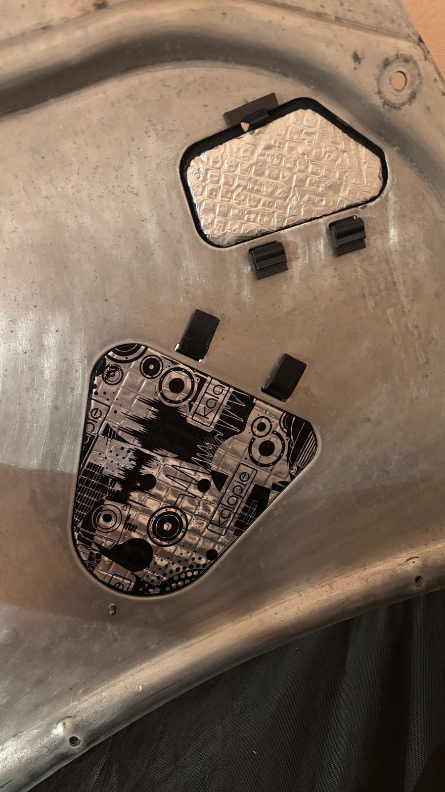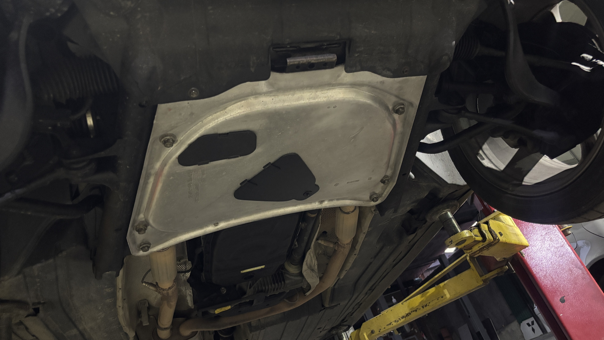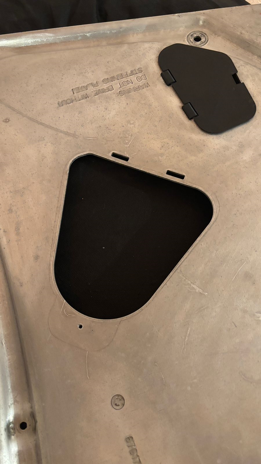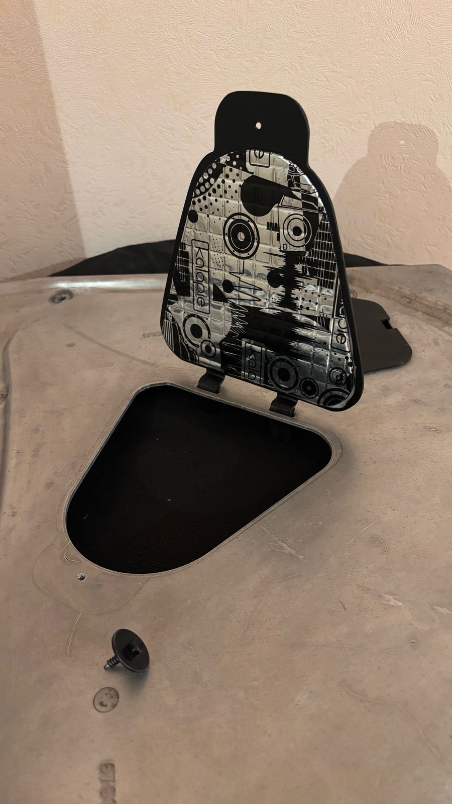 Шаг за шагом продолжаю исправлять косяки по этой машине после бывших владельцев. Сейчас очередь дошла до защиты двигателя. То что защита стоит не правильная выяснилось случайно при замене масла. Стало это понятно когда я увидел, что отверстия не совпадают ни с масляным фильтром ни со сливной пробкой. Эта защита имела мелкие отверстия в разных сторонах. Ставится такая защита на 3.0 версии. На моем же 4,4 идет защита с одним большим отверстием в центре и одним маленьким с краю. Поэтому что бы заменить масло приходилось скручивать защиту. Такой вариант мне не нужен естественно. Поэтому с разбора взял правильную защиту под мой мотор. Укомплектовал ее крышками. Малькая была на руках. Но вот большую не вариант было найти ни где. Ни авито, ни разборки такие вещи не продавали. Пришлось придумать ее и изготовить самому. Продумать так же все креплкения. Снял размеры с отверстия и с припуском вырезал из пластика новую крышку. Изготовил две Z-образные изогнутых ножки которые вдвеваются в прорези в самой защите. Короче говоря сделал так же как и было у оригинальной крышки. С дугого края я решил фиксировать на винт самонарезной. Для того что бы любой мастер к примеру не обломал там ни какие защелки которыя я бы мог изготовить. Ну или что бы просто ни потерять ее в дороге если поток воздуха станет на нее слишком сильно давить. Поэтому крепление на винт будет самое надежное. На тыльную сторону так же наклеил виброизоляцию как и у маленькой крышки. В итогу все встало очень хорошо. Скручиваешь винт и открываешь крышку. Она распахиватся как на петлях держится на своем месте. Слил масло, закрыл, закрутил. Теперь когда защита укомплектована, то можно ставить ее на законное место.