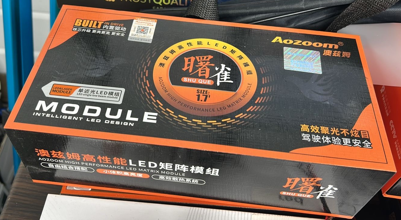 Установили по два Bi-led модуля "Aozoom ALMD-06-01, 1.5 дюйма, 12V, 5500K" в каждую фару и по одной линзе дальнего света "Laiglow Pixel 1.5 дюйма, laser, 40W". В общем шесть линз, четыре ближнего света и шесть дальнего света. Все линзы китайские, качество хорошее, мастера дали гарантию 2 года.