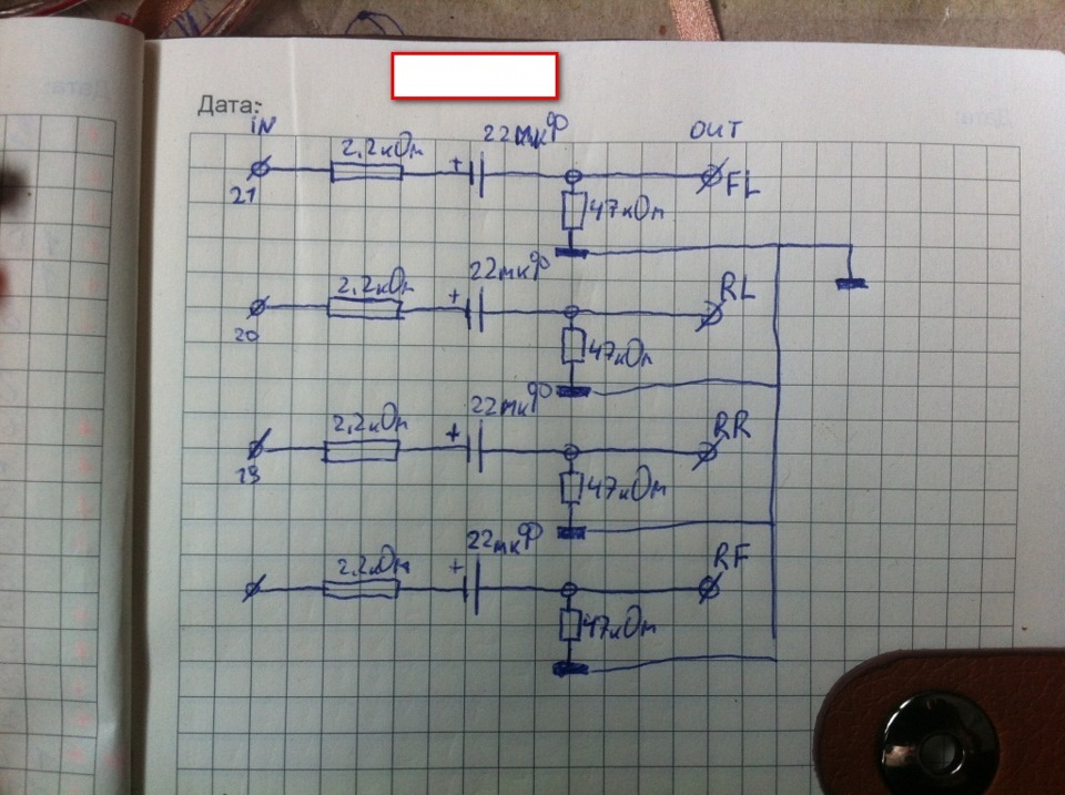 11,12,14 и 15 — каналы (Левый фрон, левый зад, правый зад и право перед соответственно) и припояццо до конденсаторов.