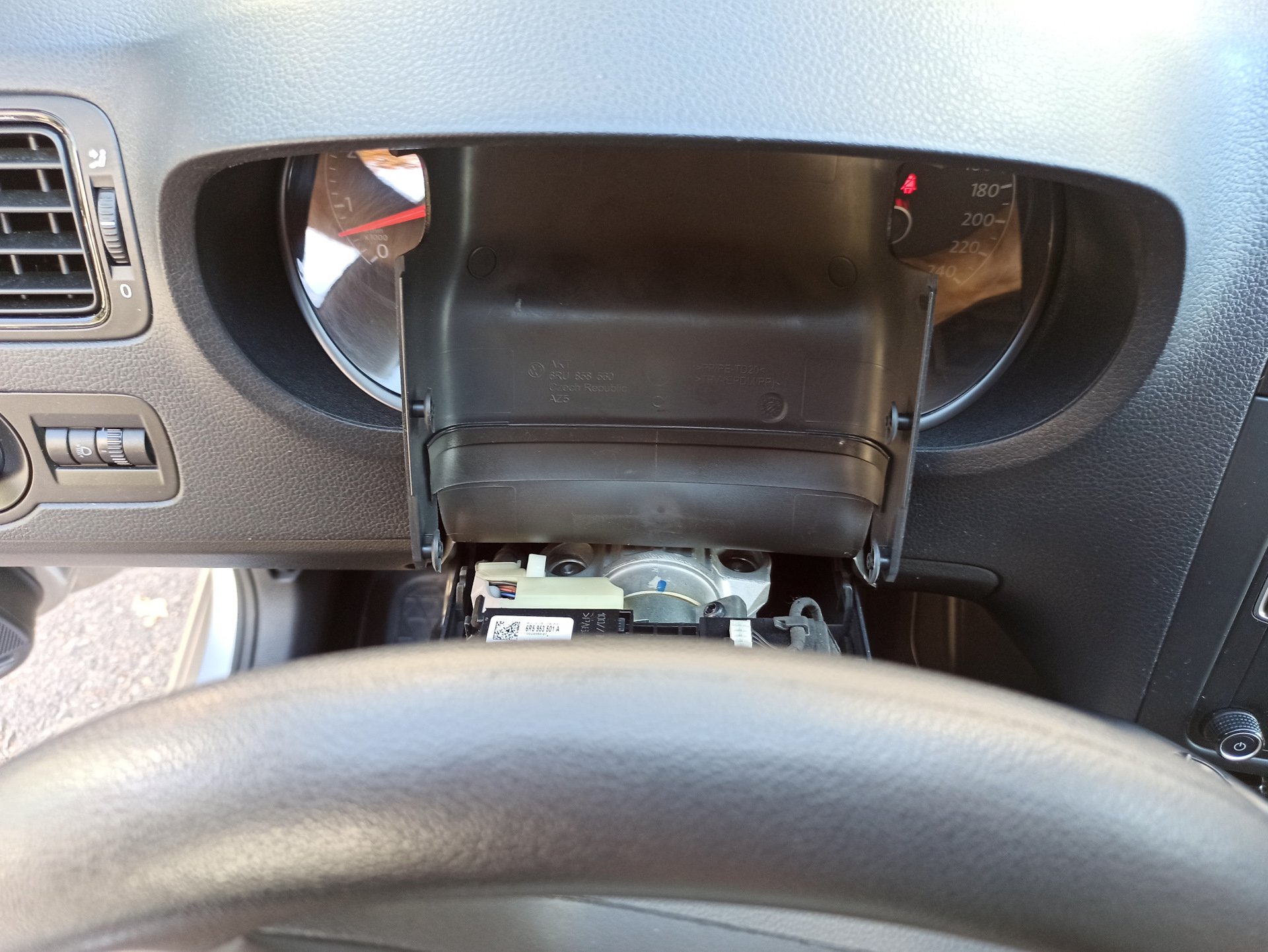 Перед снятием подушки поднимите или снимите верхнюю крышку рулевой колонки, так места за рулем станет больше и отщелкнуть подушку на рестайлинге будет намного проще.