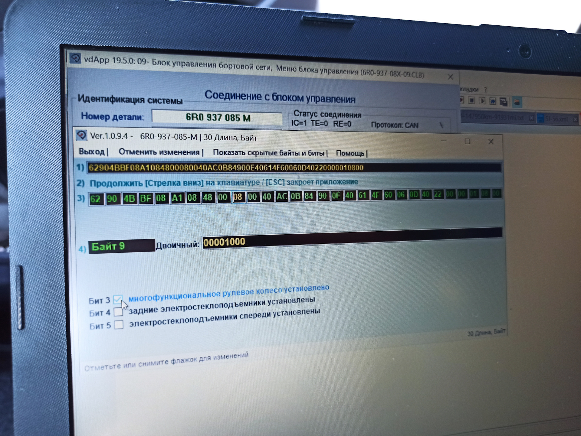 Круиз закодировал только в ЭБУ. BCM круиз не только не поддерживает, но и настройки, связанные с круизом, не сохраняет, так что эта опция заработает после замены блока BCM на 087-ой (круиз и радиоключи). Подходящий блок, поддерживающий и радиоключи (как и круиз) уже найден на авторазборке за 2200 руб. с доставкой.