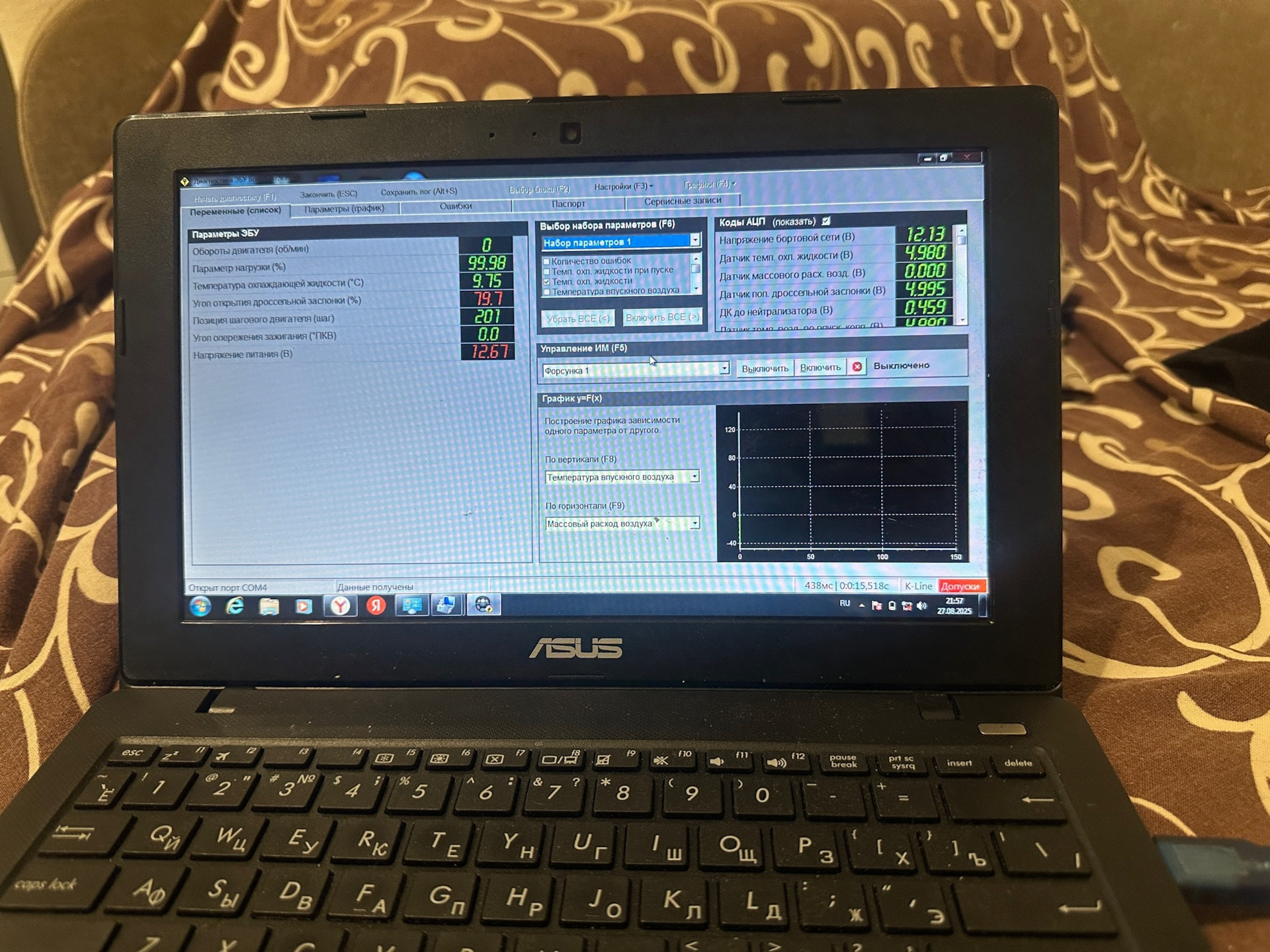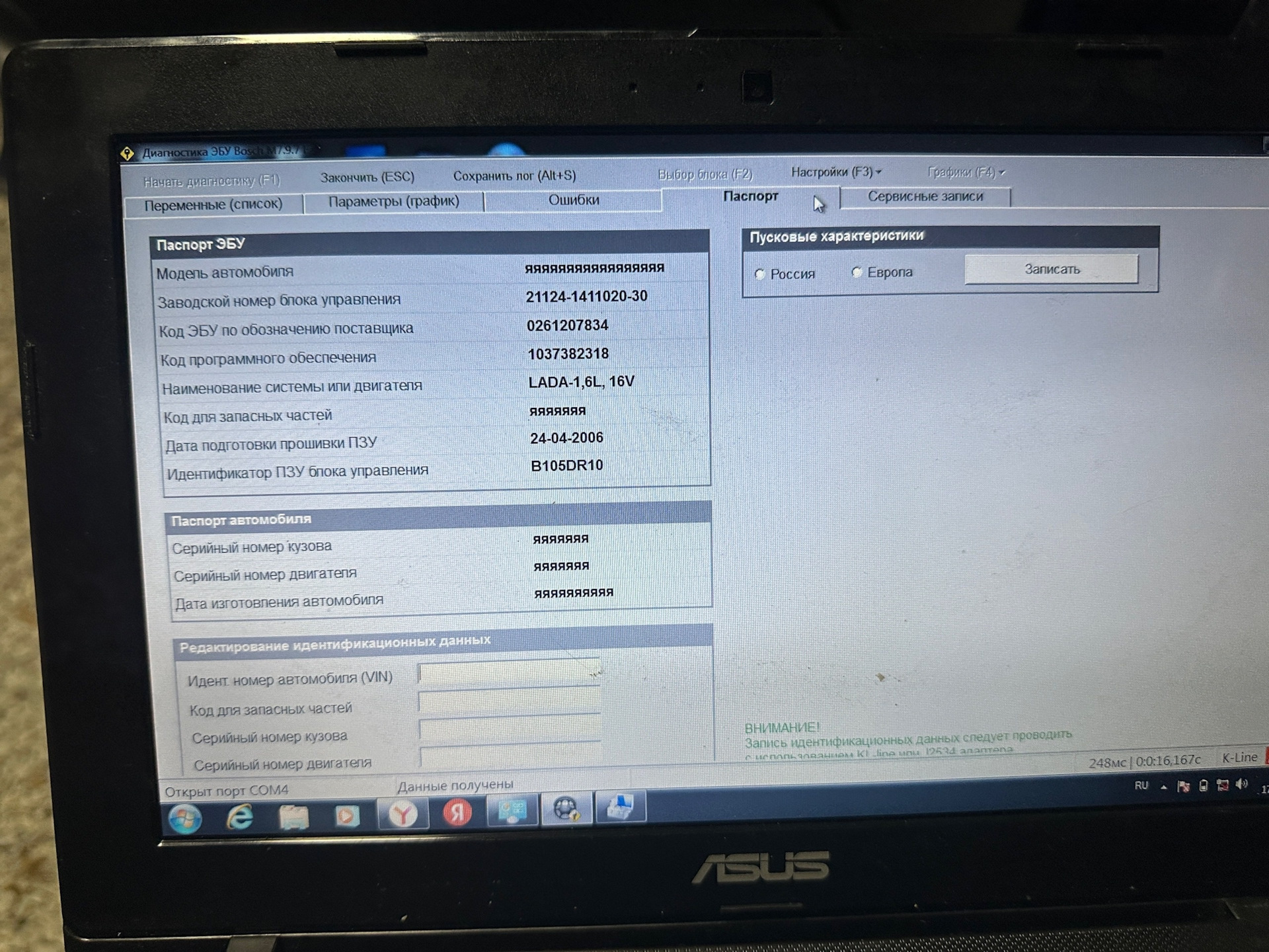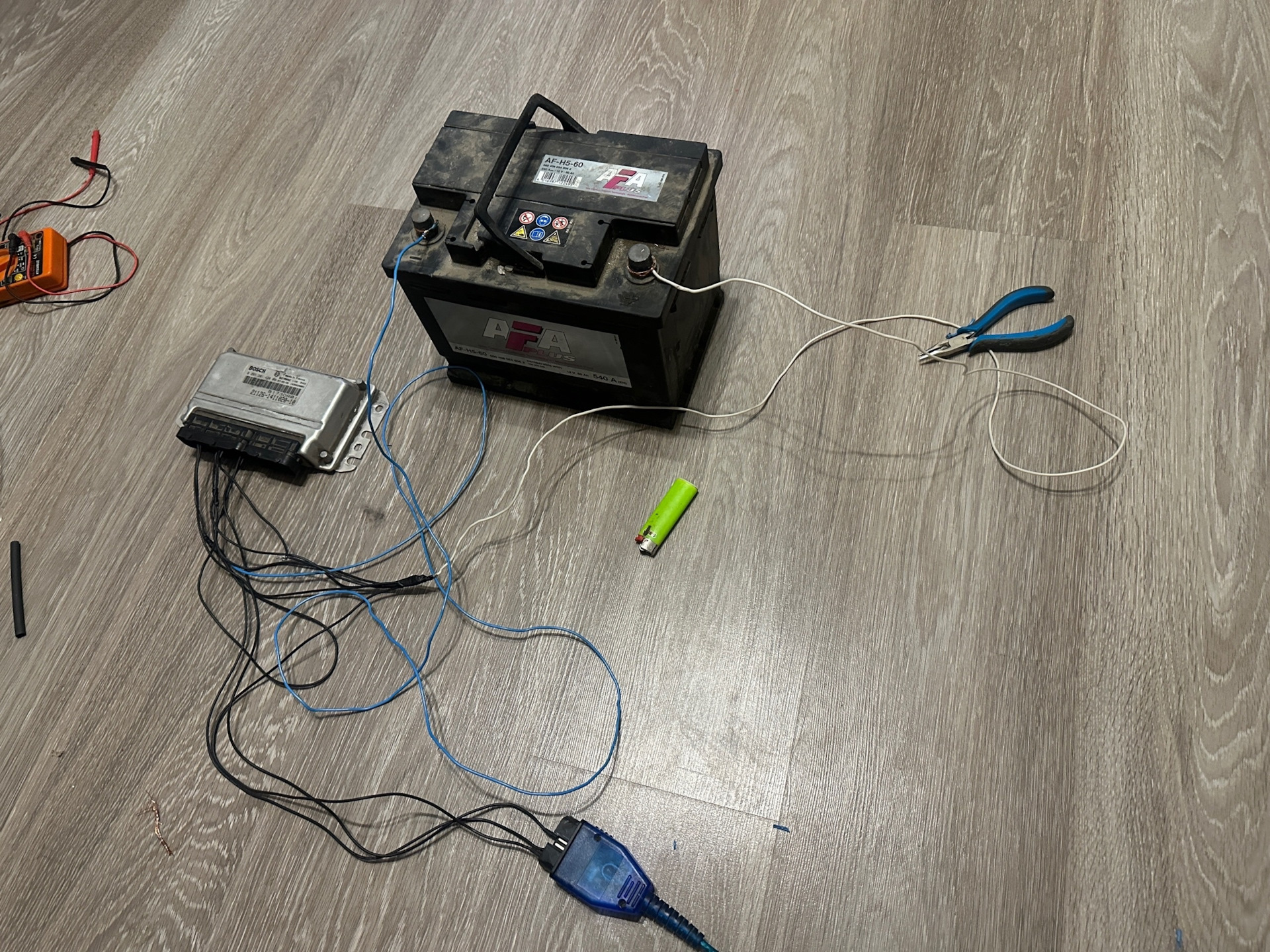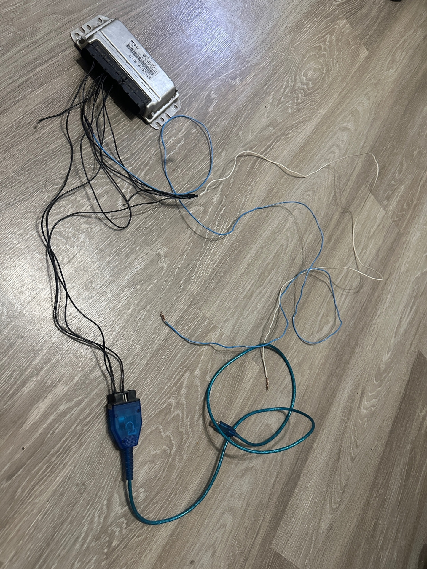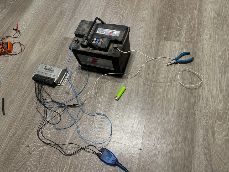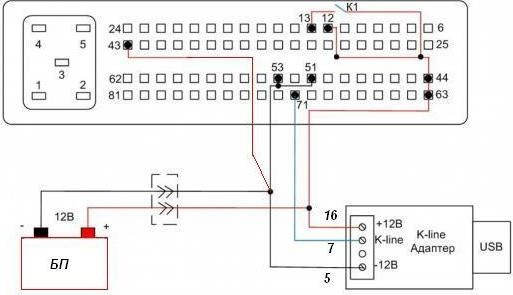 Сначала диагностикой подключился, блок видно, переставил пин на 43 ногу и можно пробовать подключиться чиплоадером. Не забываем подключать 13 провод, это зажигание.