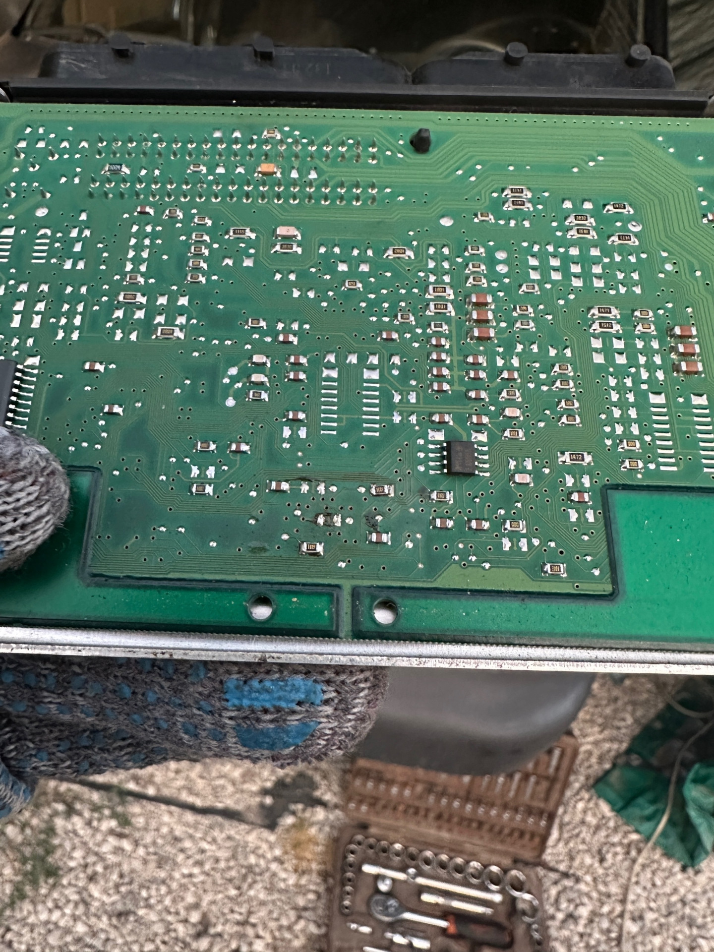 Полез к блоку. Вот собственно пациент, внутри следы перепаянного резистора, его прошивали, да и на корпусе указана родная прошивка.