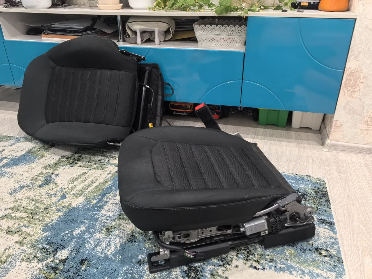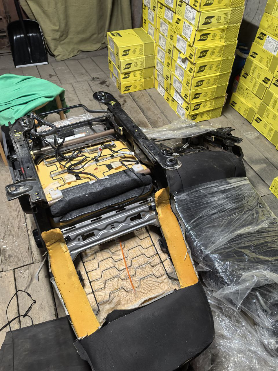 По хронологии событий было следующее: бороздя просторы интернета и сайтов с объявлениями мне попадается объявление о продаже каркасов сидений от Мондео-5 под электрорегулировку (водительское без моторов, просто каркас, а вот пассажирское полный комплект) и после ну очень долгих и редких переговоров с продавцом я всё таки купил каркас только пассажирской сидушки (начал переговоры еще в декабре, а купил только в конце января 😂) Каркас закинул к брату в гараж и всё ушло опять в дальний ящик.