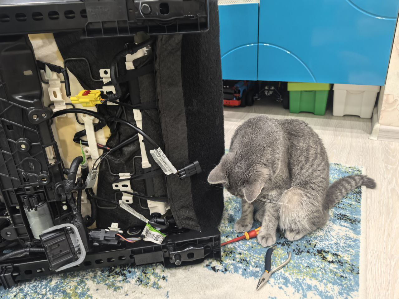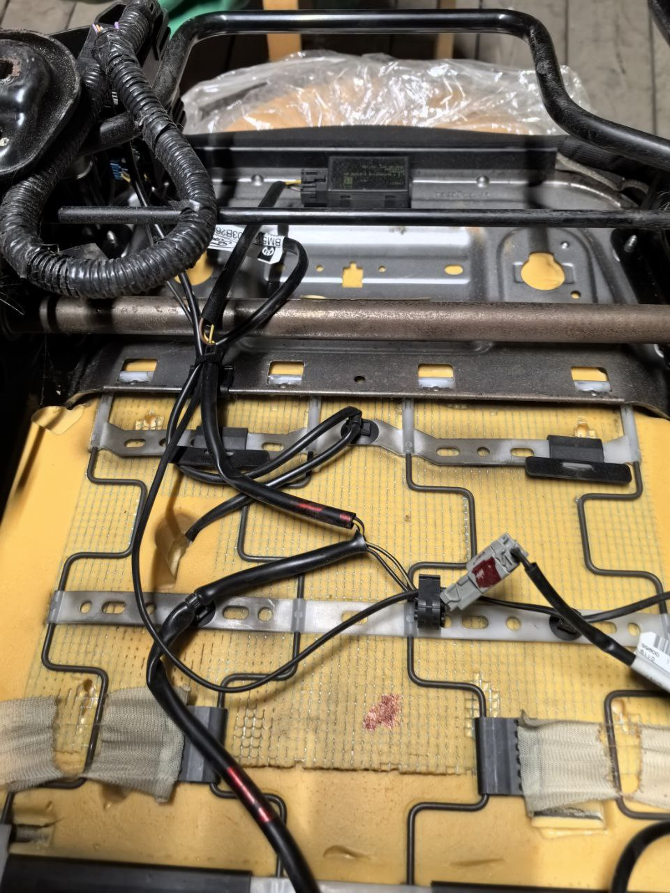 Начал с пассажирской, снял ее с авто и вместе с купленным ранее каркасом принес всё это домой. Могу сказать ОДНО: страшно только в начале от незнания. А дальше всё просто: разобрал сиденье (кстати, снять чехлы с Мондео-5/Фьюжена в разы легче, чем на Фокусе), перекинул всё на новый каркас, установил маты обогрева и собрал назад. Перебрал проводку: собрал из двух одну. И установил в авто. Проверил — работает. Радости не было предела.