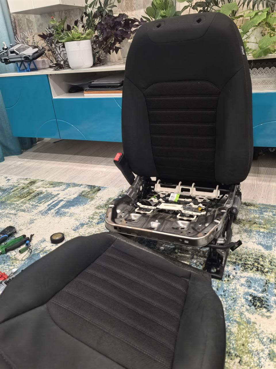 Следующим вечером уже установил маты в водительское сиденье. И тут есть один лайфхак (модное слово) спинку лучше открутить от сидушки, так легче снимать и надевать чехлы, но об этом я узнал уже когда собирал водительское сиденье 😂