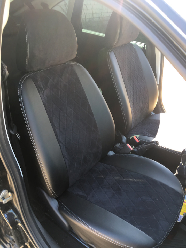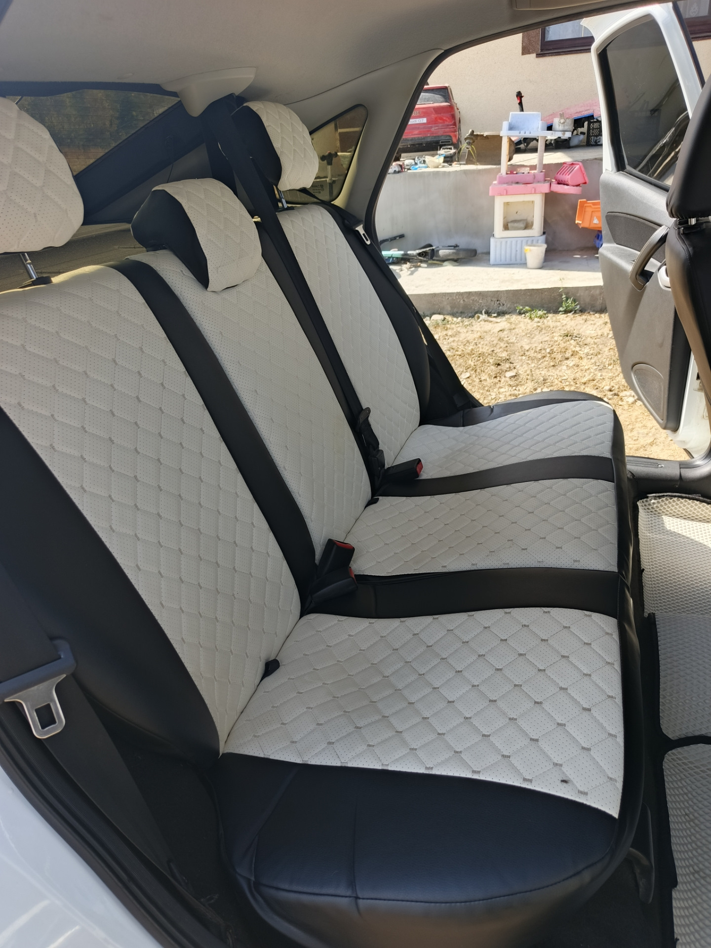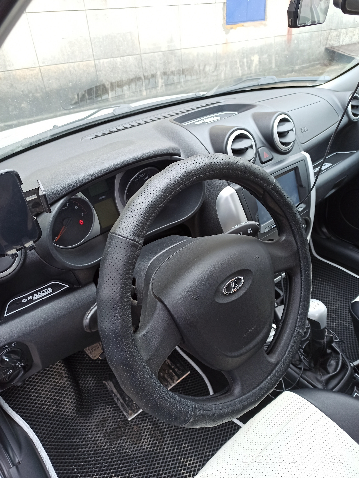 Чехлы на сидениях практически с новья. Прошлой зимой поменял на новые. Чехол на руль одет на пробеге 40К в 2019 году. В конце 2024 года поменял на новый чехол.