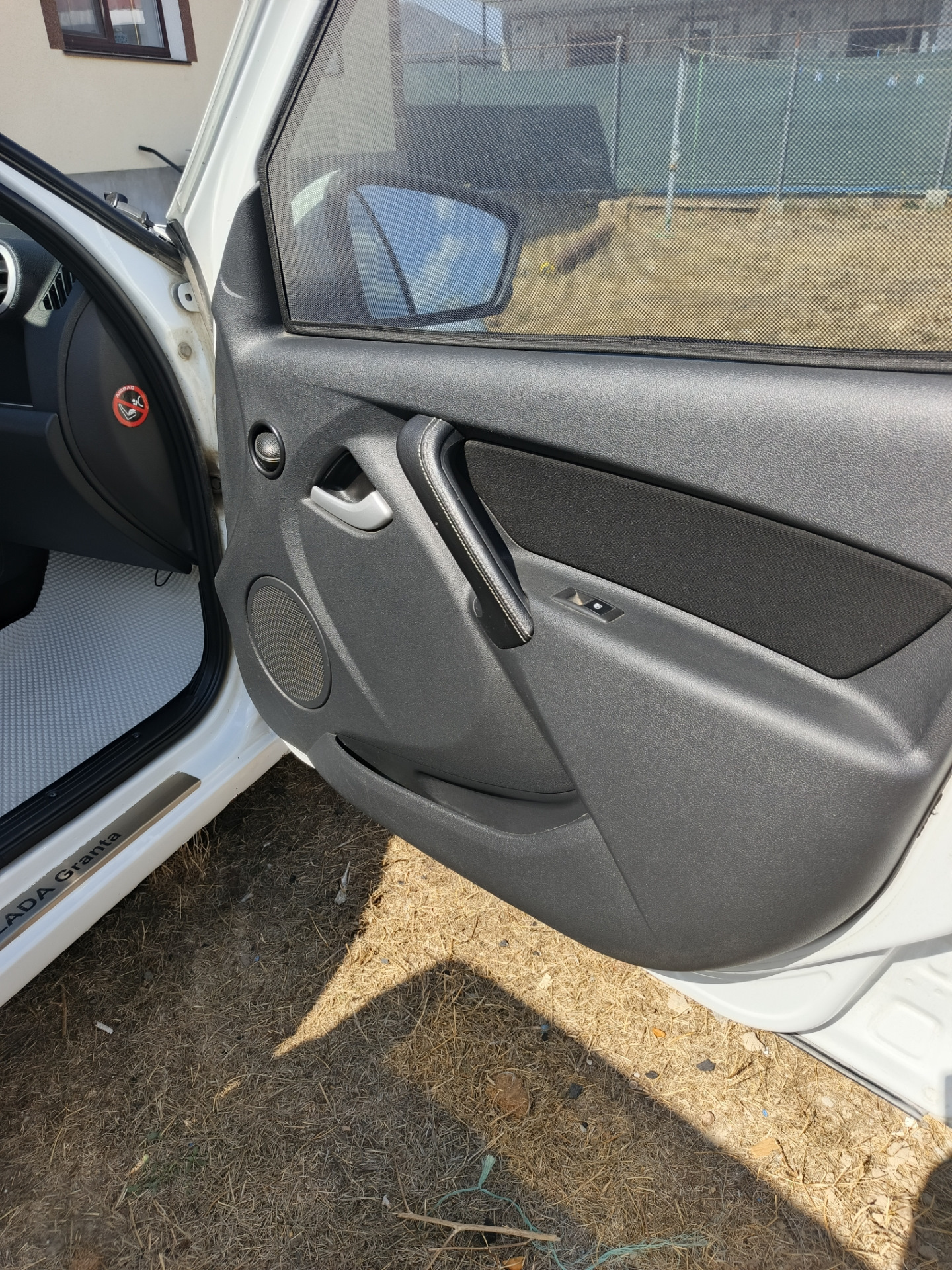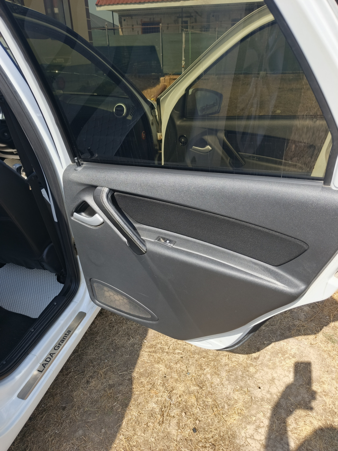 Но даже так салону достаётся и в основном заднему пластику на порогах, так как шоркают ногами по нему. А шоркают в основном по причине того, что в Гранте сзади мало места. Пару-тройку царапин заимела и крышка бардачка от сумочек и рюкзаков. Но в целом состояние салона хорошее. До убитого ему ещё очень далеко)))