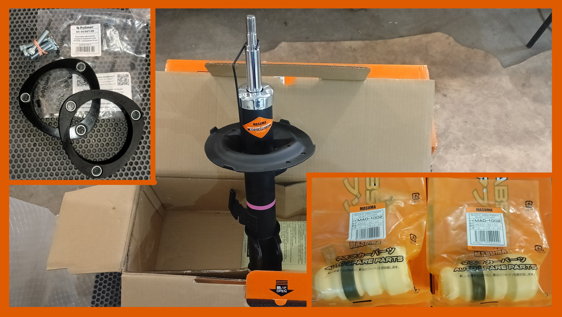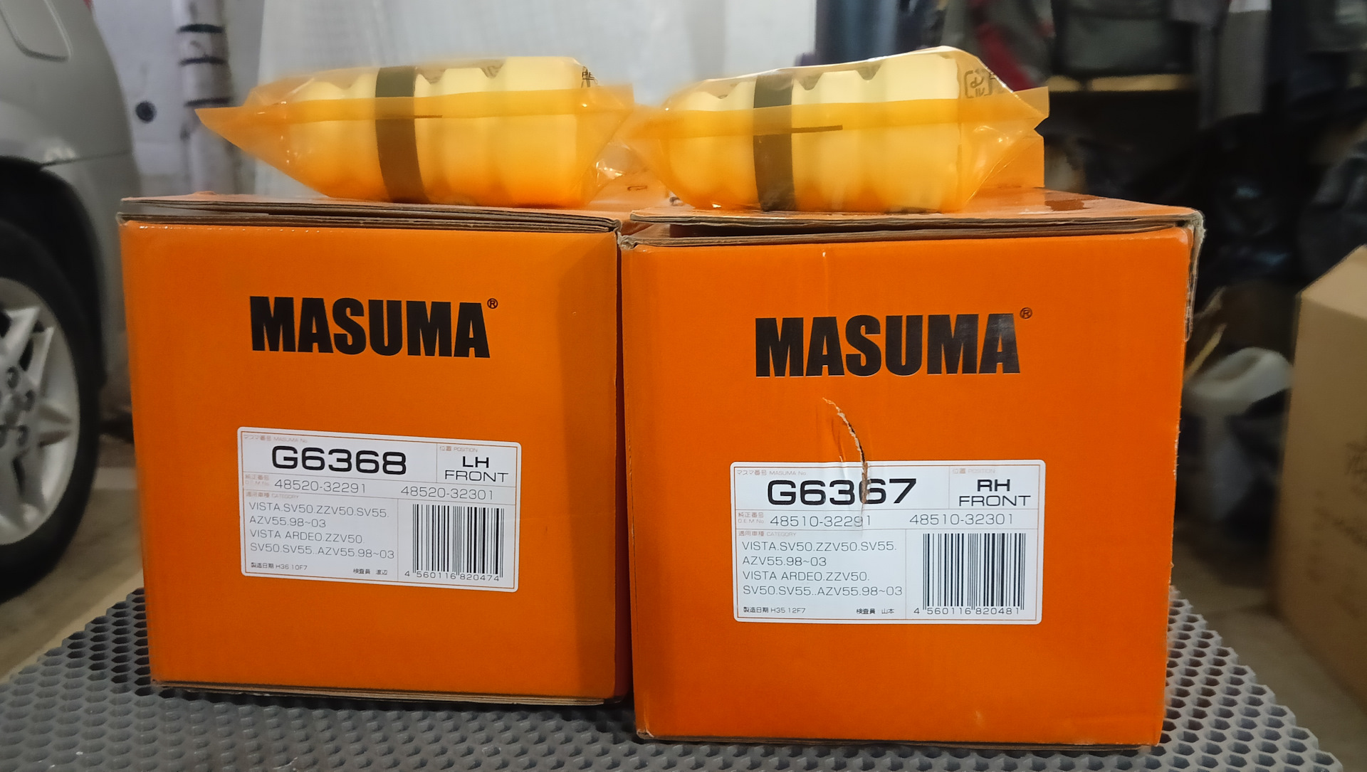 Поскольку выбор амортизаторов, на мою машину, очень маленький, либо полный Китай, который не известно сколько прослужит, либо KYB или Tokico, но они по цене не устраивают. На форуме нашёл информацию, что подходят амортизаторы от Vista Ardeo в кузове SV50, ZZV55. И там же были указаны номера на амортизаторы Masuma. Отличия амортизаторов, в том, что у амортизаторов от Vista Ardeo диаметр штока 22 мм, и шток длиннее примерно на 30 мм. А у стандартных амортизаторов Toyota Opa шток 20 мм.