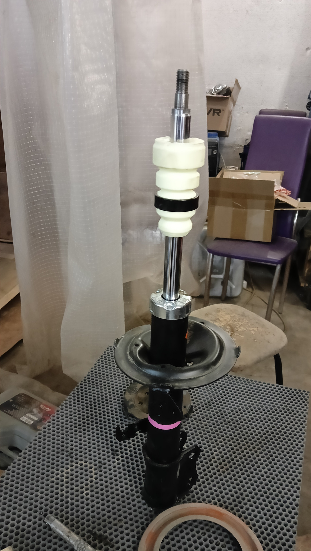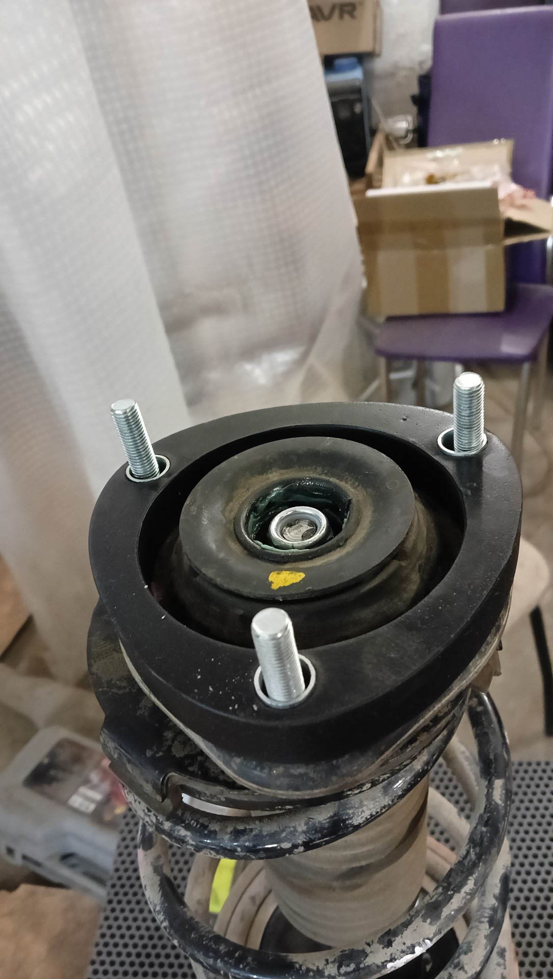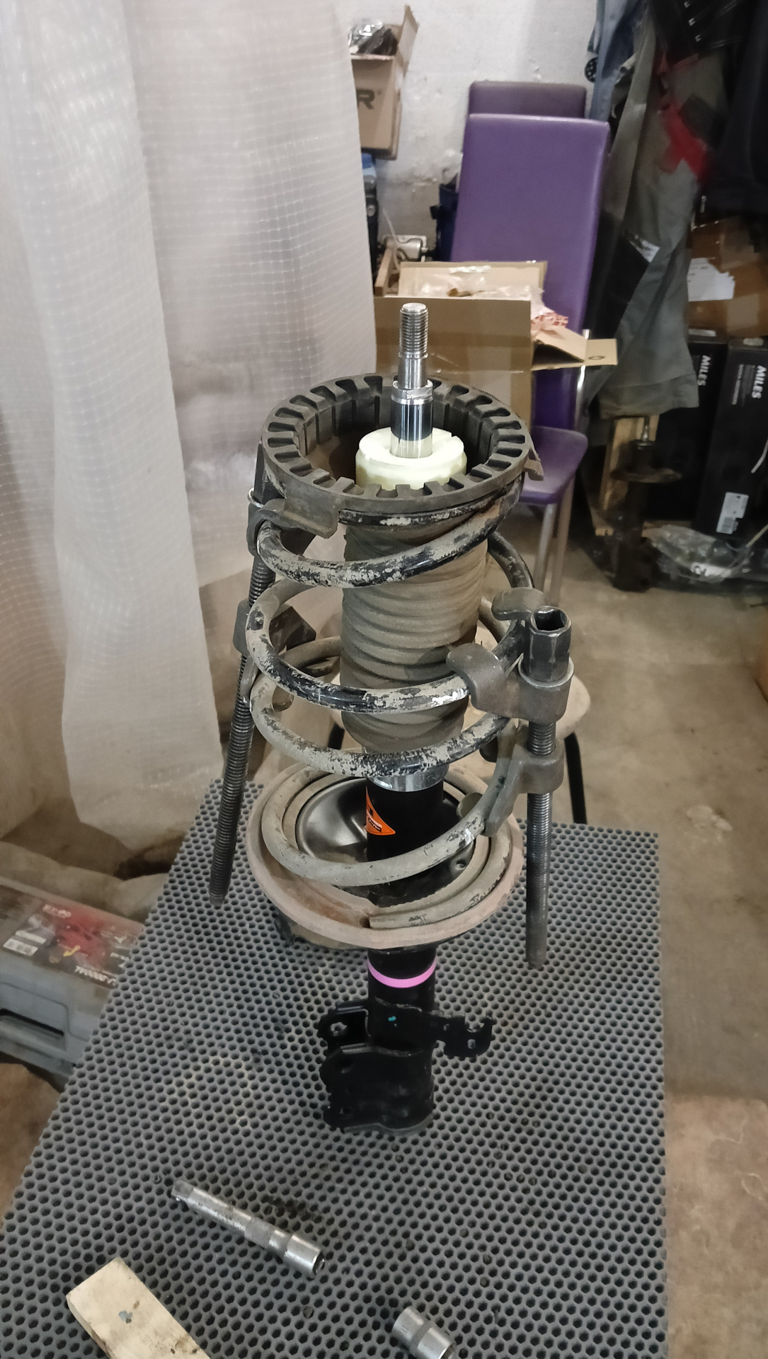 И после установки новых шпилек собрал стойку и установил на место.
