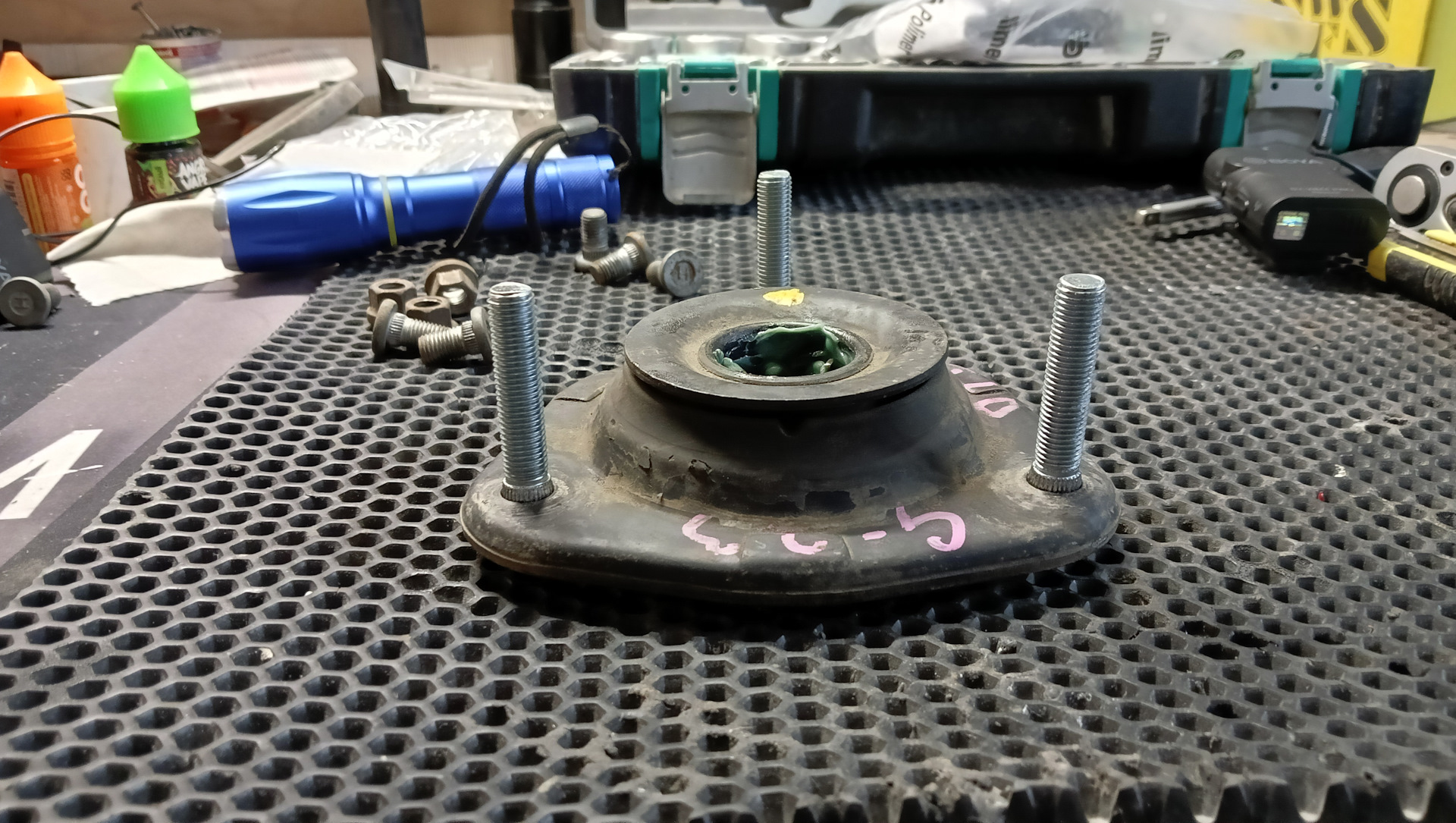 Теперь настало время поменять шпильки на опоре амортизатора. Потому что будут установлены проставки 20 мм.
