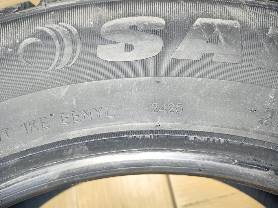 Резина новая, мягкая, дата производства 24-ая неделя 25-го года, это конец июня. Считаю, что с резиной повезло. Теперь надо зимний комплект дисков отдать на реставрацию.