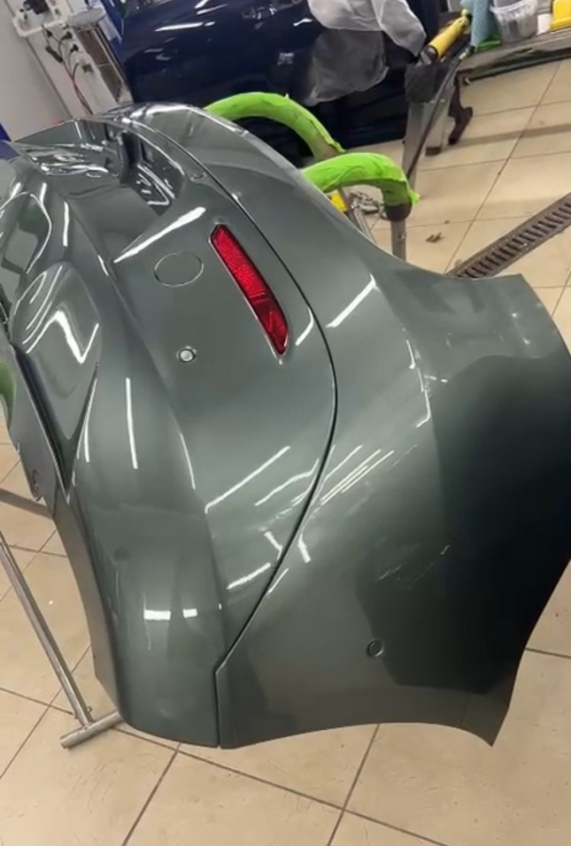 С завода часть заднего бампера из текстурного пластика, очень маркая вещь. В ресте исправили эту ошибку и новый бампер весь закрашен.
