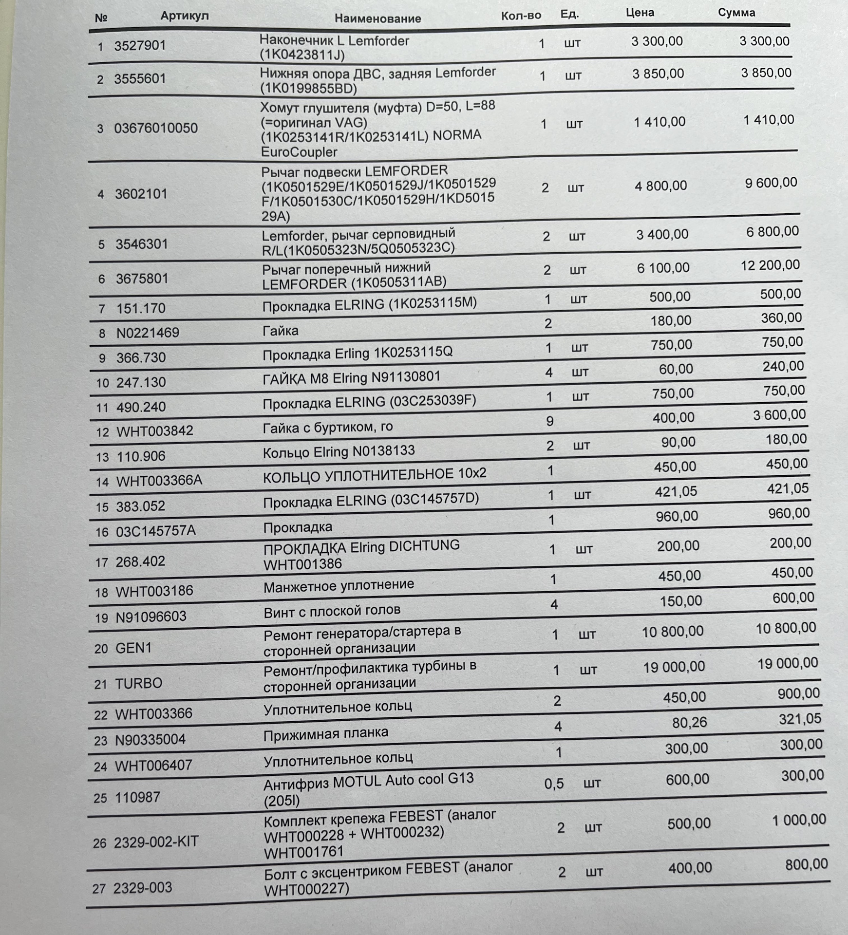 турбина уехала в ремонт — заменили калитку. суммарно ремонт турбы обошелся в ~40 тысяч (снятие-установка 12nh, замена втулки и калитки и чистка — 19тр, и еще порядка 10тр сопутствующих болтов, прокладок, антифриза и прочего)