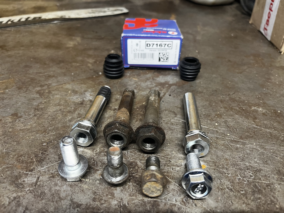 Когда менял колодки и диски, обнаружил что пальцы в скобах передних суппортов ржавые и подкисают. Само собой промыл и обновил смазку но менять надо сами пальцы.