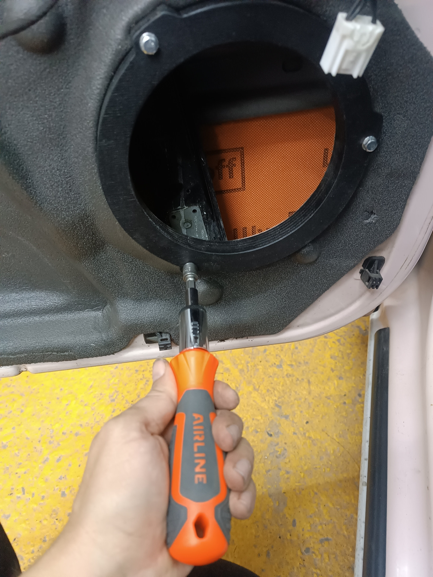 Для инсталляции акустики снимаем обшивку двери: