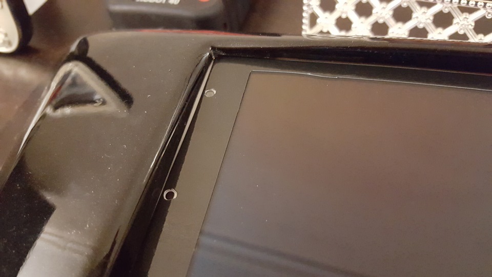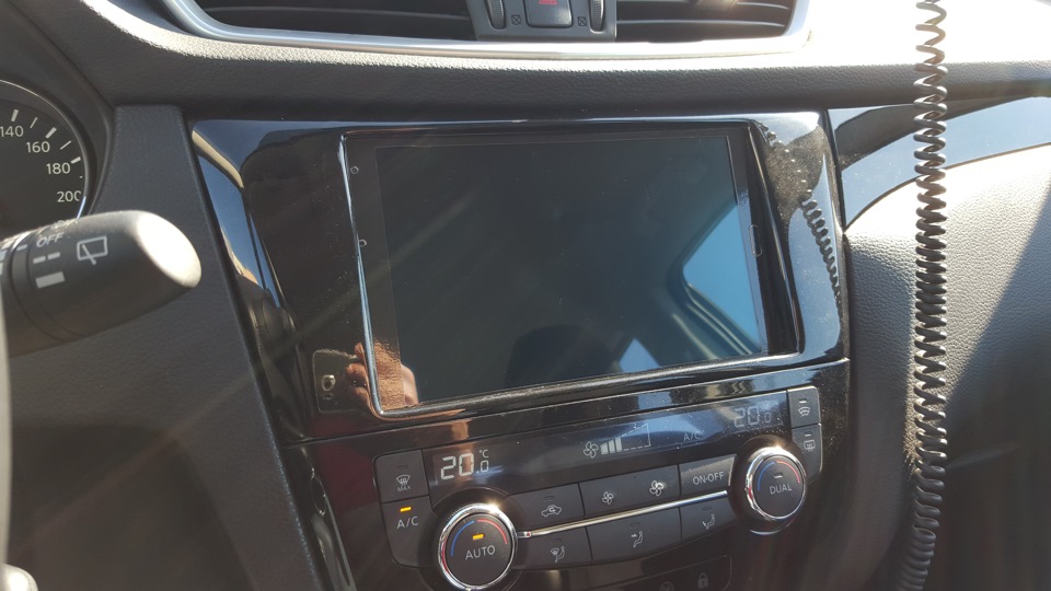 Многие говорили мне (да я и сам понимал это), что белый планшет в черной панели смотрится ужасно не гармонично. Вариантов было не так много. Перекрасить все элементы салона в белый. Поменять планшет на черный. И сделать из белого планшета, черный. Первые два не имели права на жизнь не только по финансовым соображениям… хотя кому я вру! Конечно по финансовым! )) В общем нужно было поменять цвет существующего планшета. Самый простой и логичный вариант который пришел мне на ум, это заказать черную пленку на переднюю часть. Поискав по сети, с досадой обнаружил, что лицевой наклейки на мой планшет не существует (может плохо искал?). Поэтому заказал универсальную, что бы можно было вырезать все самостоятельно. Заказал сразу две (как чувствовал :)). Снял размеры, наклеил, и начал вырезать. С первого раза получилось очень даже ничего. Правда, возникли небольшие трудности с центральной кнопкой. Нужно было сначала вырезать ее, а потом уже клеить. Не долго думая, содрал первый вариант, и наклеил по новой, предварительно вырезав центральную кнопку. Получилось вполне приемлемо. Можно конечно и лучше, но так можно еще долго пробовать себя в мастерстве вырезания пленок ). Поэтому решил пока оставить так. Пока не найду решения, как найти наклейку, которая была бы сделана под мой планшет на специализированном оборудовании. Может подскажет кто?