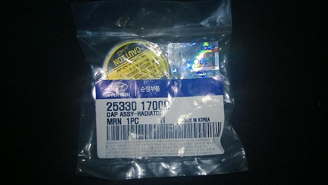 Понимал что надо что-то делать с радиатором, а именно менять) Так как он итак потел по бачкам, а потом и вовсе стал прямо подтекать. А началось, похоже, все из-за заедающей пробки радиатора. Так как на нем очень сильно разбухла резинка, что её довольно трудно было вытащить из радиатора. Купил и пробку. По совету форумов взял 0.9 атм, вместо родной 1.1. Ориджинал. HYUNDAI/KIA 2533017000