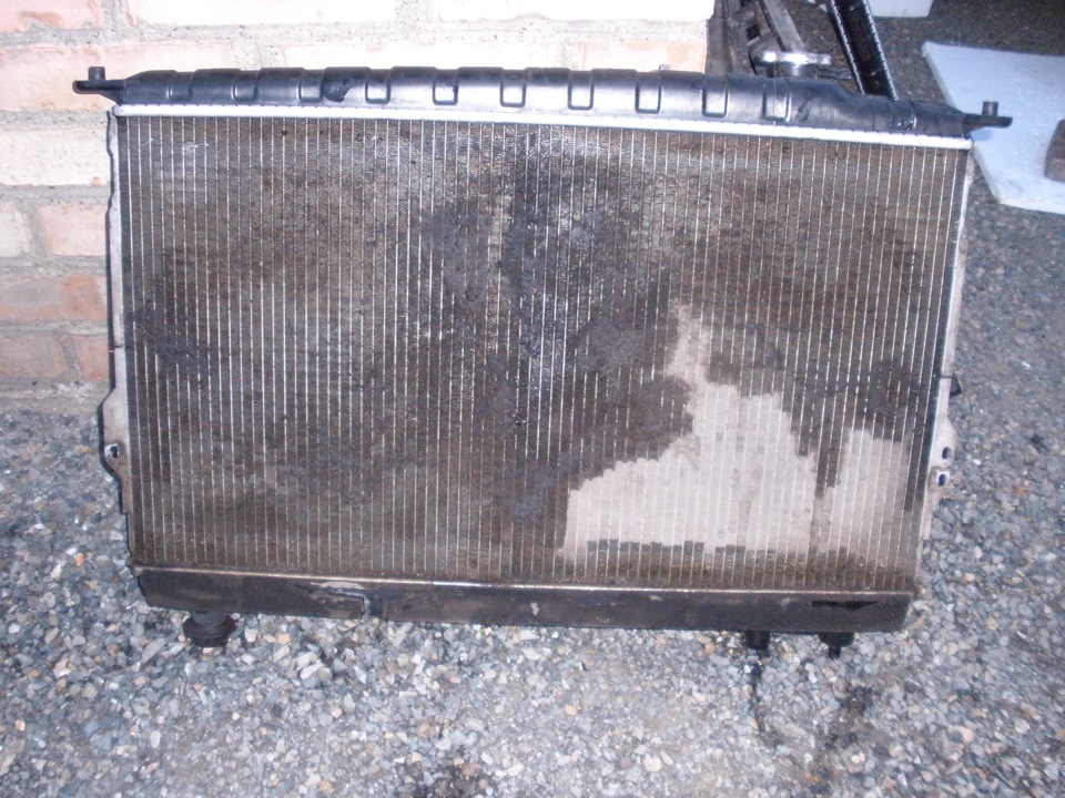 На старом радиаторе Андрюха продемонстрировал как не надо мыть Керхером радиаторы)