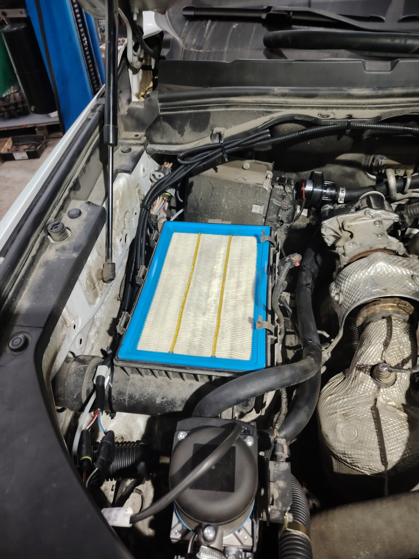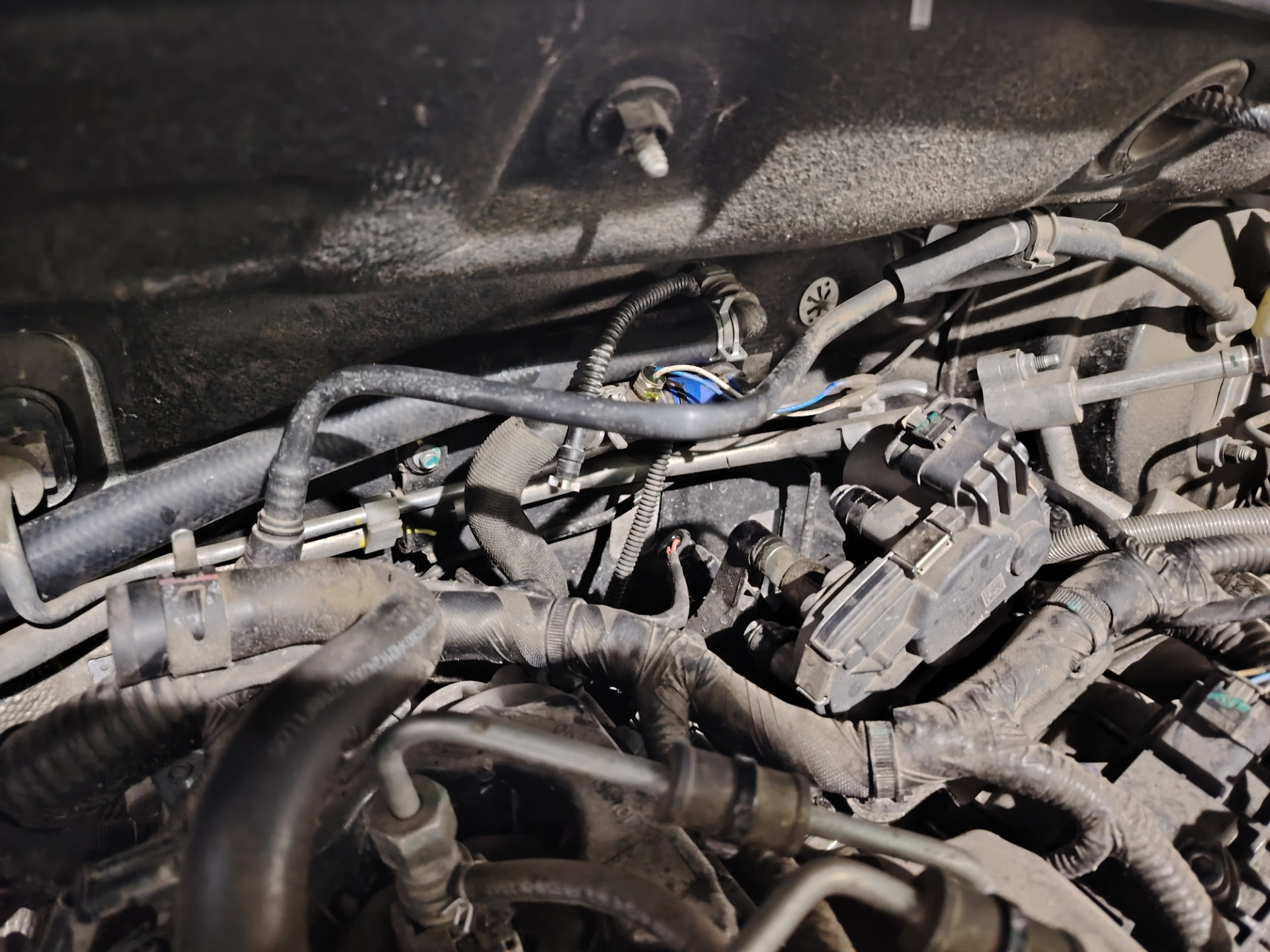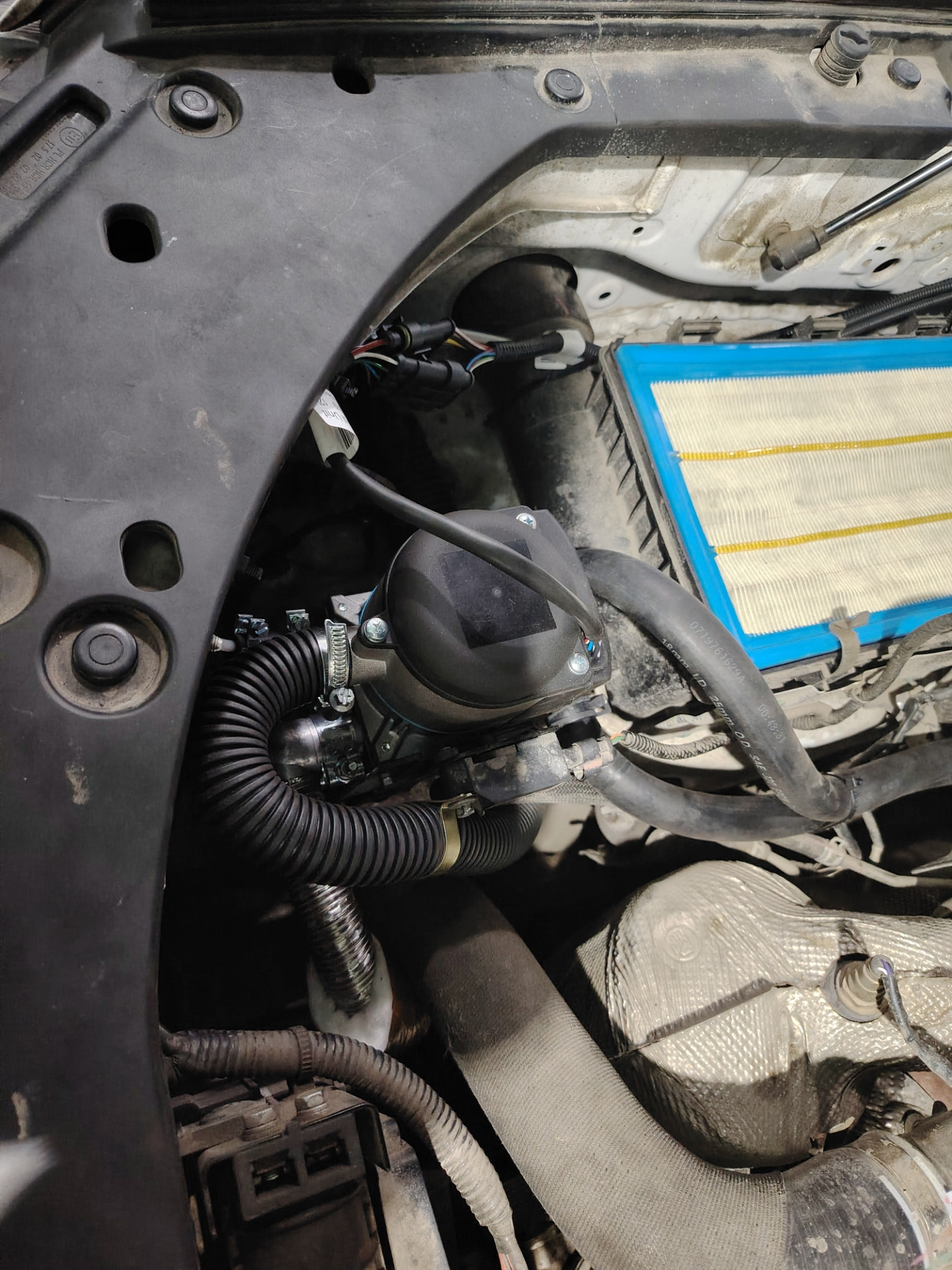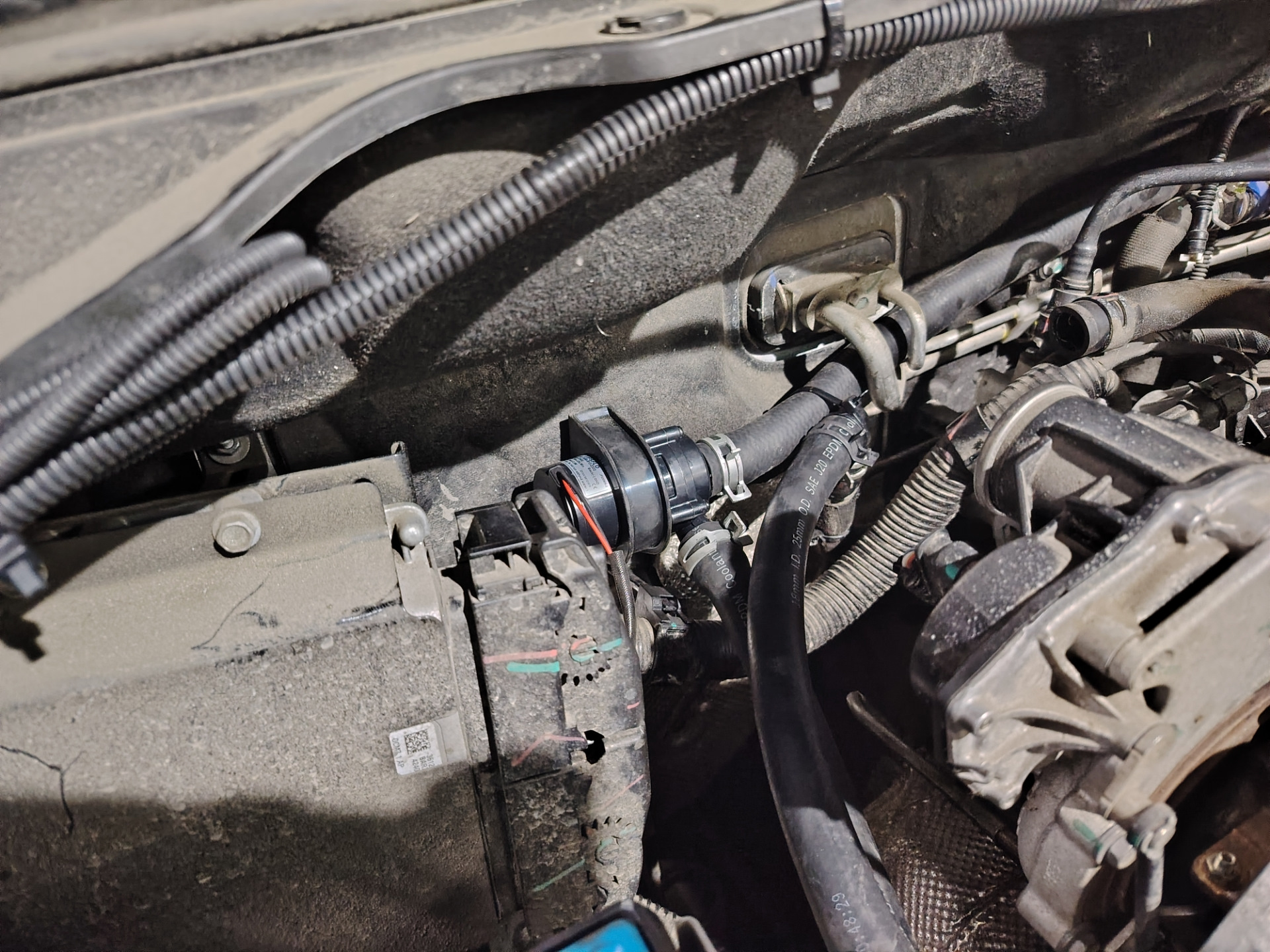2 часа ушло на то что бы его сюда поставит, мерил в начале родной кранштей к нему который идет, гнул ну ни как он не влазит все упирается куда-то, том отрезал уши от него и привари к штатному креплению датчика давления в DPF