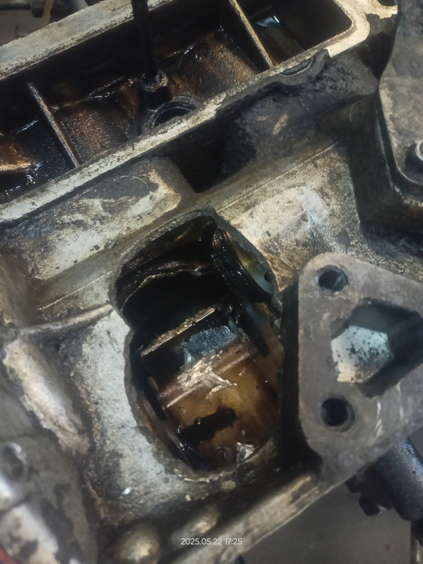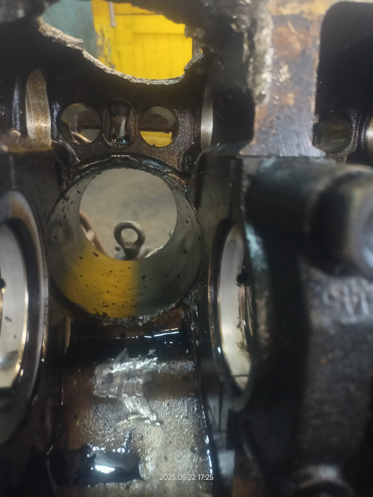 На следующий день начались поиски донора — нужен был в первую очередь блок, при этом с возможностью дальнейшей перерегистрации. Из найденных блоков устраивающих по бюджету подошёл только один. И тот надо потом перерегистрировать через процедуру внесение изменений в ТС. Донор оказался без головы, головку оставил свою, заменив на ней клапана. Коленвал на доноре тоже оказался с недостатком — разбито посадочное место под шпонку шестерни ГРМ. Нашёл ещё одного донора, с которого был снят коленвал. Поршневую группу поставил новую. По итогу получается собрал один двигатель из трёх. За работу по пересборке мотора отдал 22Круб (делали мужики по знакомству).
